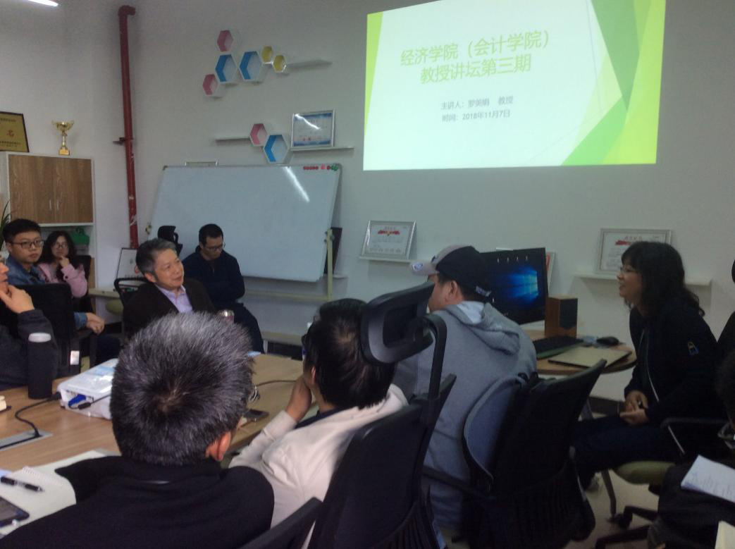 2018年11月7日下午,拉斯维加斯3499官网登录入口(会计学院)“教授沙龙”第三讲在拉斯维加斯3499官网登录入口1113双创基地举行,拉斯维加斯3499官网登录入口罗美娟教授做了题为“中国税制结构与创新抑制”的学术报告。张林副院长、院教授委员会主任程士国教授、多位老师、博士、硕士和本科生参加了此次学术沙龙活动,聆听罗美娟教授的主题发言,并进行了热烈的学术讨论。