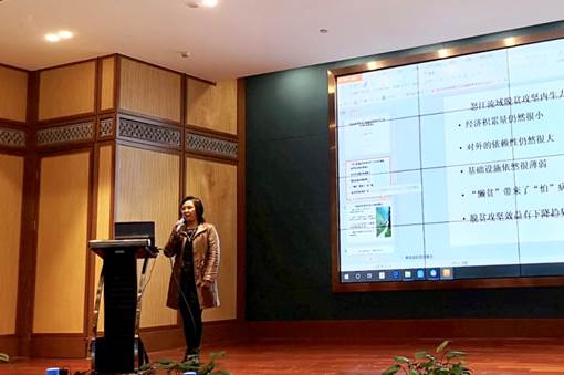 肖迎教授做了《生态扶贫培育怒江流域脱贫攻坚内生力的思考和政策建议》的分论坛报告,探讨了生态资本转化在怒江流域脱贫攻坚内生力培育中的理论意义、实践意义,以及生态资本与其他生计资本的关系等问题,引起了与会专家的争鸣。