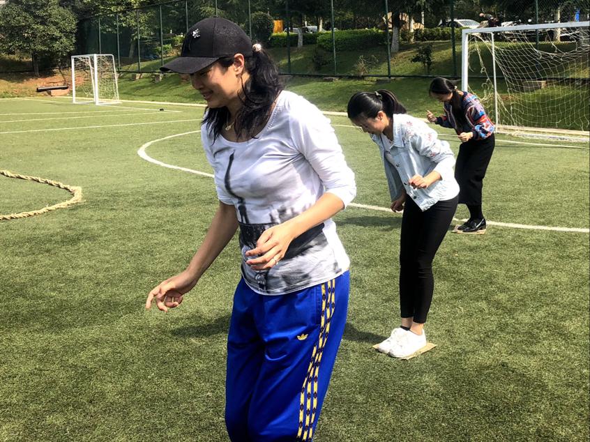 在工会主席杨恒芬老师以及副院长罗美娟老师的简短发言后,趣味运动会正式拉开了序幕。第一个比赛项目是携足并进,教师队和学生队各自用绳子绑到一起进行接力比赛,用时最少的队伍获胜.第二个项目是过河搭桥,要求每个人站在一块纸板上,双脚不能离开纸板,先到达终点的队伍获胜,这个比赛虽然难度较大,但是在老师和学生相互默契配合下,比赛顺利完成。第三个比赛项目是师生友谊拔河比赛,三局两胜制。随着裁判的一声令下,师生两边共同发力,第一场教师队一鼓作气,获得了第一轮的胜利,第二场学生队厚积薄发,将比分追平,在关键的第三场里场下的同学们为两边的队员鼓劲加油,老师组最终取得了最后的胜利。三个比赛教师队都体现出了惊人的默契和体力,在三场比赛中无论是时间还是完成度都远超过学生队,三场比赛过后教师队积分最高,获得了最终的胜利。