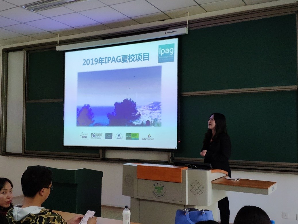 随后,来自法国IPAG商学院的倪老师对拉斯维加斯官网IPAG志愿者同学所进行的各项活动表示了感谢,并对法国与IPAG商学院的整体情况做了介绍。倪老师图文并茂地为同学们描绘了在法国生活学习的图景,详细地说明了IPAG夏校特色课程和日程安排,最后对同学们关心的生活学习费用等问题做了细致地解释。
