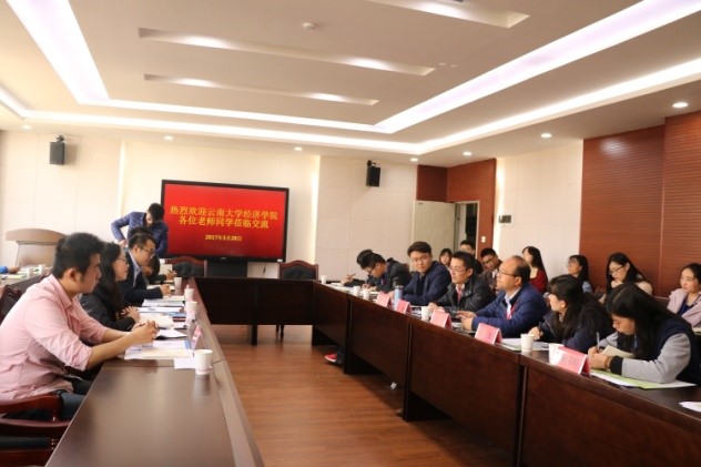 在接下来的交流过程中,双方针对在校学生科研创造积极性、就业多样性以及管理自觉性展开讨论。会上,就提高科研创造积极性的问题,武鹏老师结合院内ACCA专业的情况进行回答,认为应建立适当地奖励机制鼓励引导学生参与学术竞赛,进一步加强各高校企业的联合,缩短赛事举办周期,为学生提供更多机会去认识自身不足,自发通过比赛提高自身能力。其次,在就业方面,马子红老师指出,学生对职业意义认知存在明显不足,就业信息的滞后闭塞增加了很多不确定风险,而学院有义务为学生提供良好的实践平台,发挥好“传”、“带”、“帮”的作用,通过增强高低年级的互动性,扩大模范效应影响。最后,关于学生管理问题上,高云霞副书记结合西南林业大学经济管理学院的特色谈到,为促进学生全面发展,提高学习自律性,学院开展了晨跑、自选晚自习、社会实践等活动,通过让学生群体融入管理机制内部,带动提供管理自觉性。