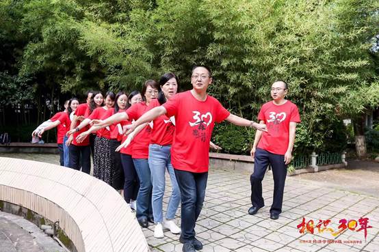 穿越银杏道,走过樱花道,同学们在至公堂前的青松翠柏下停留,在绿荫里兴致盎然地开展各种趣味游戏活动,忘记了岁月沧桑,穿越回年少时光,欢声笑语回荡在古朴清幽的东陆园。