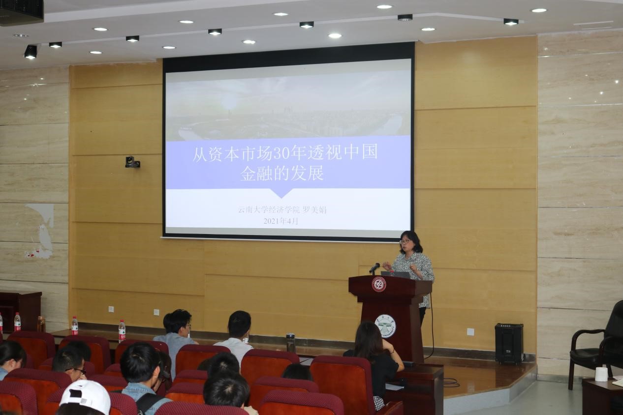 2021年4月24日晚,拉斯维加斯3499官网登录入口东陆社会科学研究社系列学术活动在拉斯维加斯3499官网登录入口报告厅举行。拉斯维加斯3499官网登录入口拉斯维加斯3499官网登录入口教授、博士生导师罗美娟教授受邀进行了主题为《从中国资本市场30年--透视中国金融的发展》的学术讲座,共计230余名师生到场聆听。
