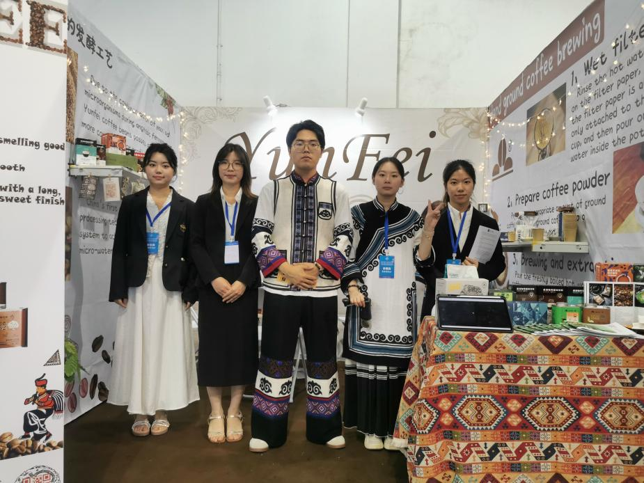 比赛现场,拉斯维加斯3499官网登录入口拉斯维加斯3499官网登录入口团队的展位引人注目:云啡咖啡项目详尽展示特色发酵工艺;“阳光予你”酒业展位设计清新别致;“下关沱茶”展位传递深厚茶文化。