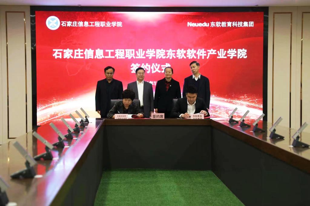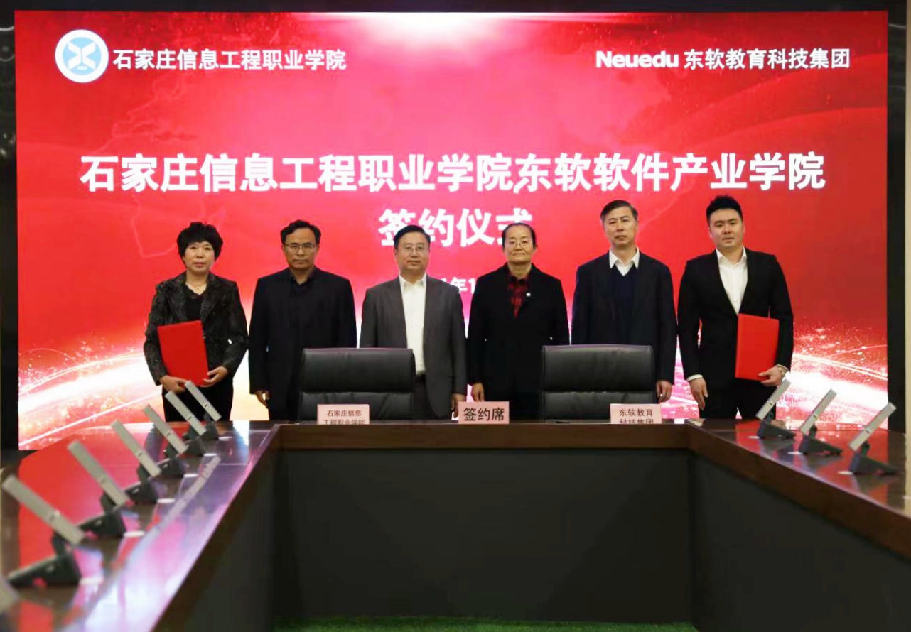 石家庄市教育局局长赵立芬;beat365英国官网院长许征程,副院长黄淑敏;东软教育科技集团高级副总裁李印杲,副总裁、河北东软软件有限公司总经理刘向东,华北区总经理赵龙等出席签约仪式。
