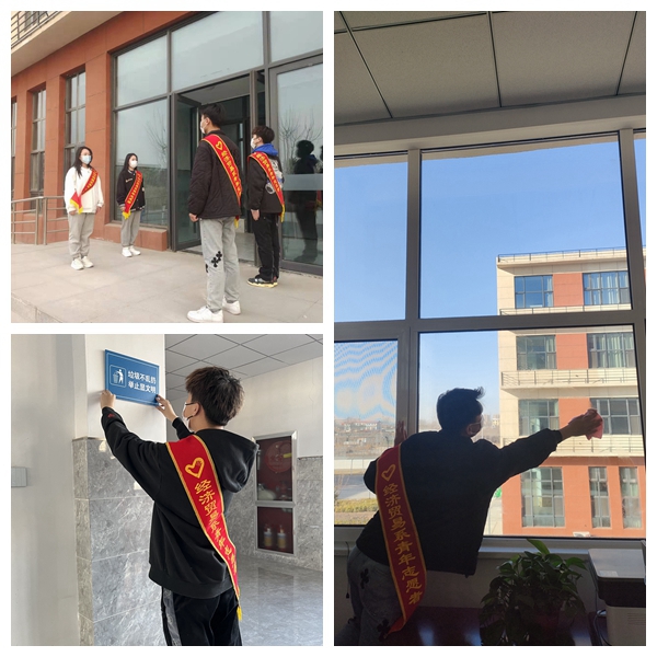 经济贸易系青年志愿者协会以“立足校园、服务社会、提升自我”为宗旨,以倡导校园文明行为、用实际行动服务师生等为主要内容,坚持开展形式多样、内涵丰富的志愿活动。启动“学雷锋月”,倡导文明先行。经济贸易系于3月4日上午启动“喜迎二十大 永远跟党走 奋进新征程”学雷锋志愿服务月。站好文明监督岗,共创校园文明风。迎着清晨的和风,顶着午后的阳光,身披红色的志愿者绶带,整齐地排成两列,面带微笑,彬彬有礼地站在教学楼下两侧,迎接来校上课的师生。向广大师生展示了经贸学子朝气蓬勃、文明礼貌的精神风貌。小小提示牌,倡导大文明。志愿者们设计、张贴文明提示牌,倡导广大同学从身边小事做起,遵德守礼践行文明。同时,还对教学区域进行了卫生大扫除,美化了教学环境。