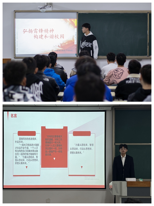网络与通信工程系结合实际,开展“学雷锋纪念日”主题系列活动。各团支部开展了“弘扬雷锋精神 共建和谐校园”“真心话儿向党说”等活动,深入学习雷锋精神,讲雷锋故事、读雷锋日记,真正理解雷锋精神的内涵。系党史宣讲小组开展了“雷锋就在我们身边”宣讲活动,让同学们从小处学习、从身边的榜样学习。宣讲小组成员王建强说:“学习雷锋,就要从小事做起,从‘我’做起,把雷锋精神体现到生活的点点滴滴中去。从实践中体会雷锋精神,在行动中发扬雷锋精神,并最大范围地影响和带动周围的人共同进步。”网络与通信工程系将以学雷锋活动月为契机,继续开展相关活动,一如既往地传承与践行雷锋精神!