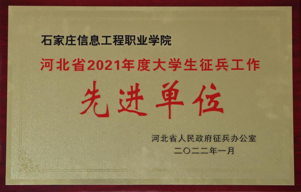 近日,河北省人民政府征兵办公室表彰通报了2021年度全省征兵工作先进单位和先进个人,beat365被评为河北省2021年度大学生征兵工作先进单位。