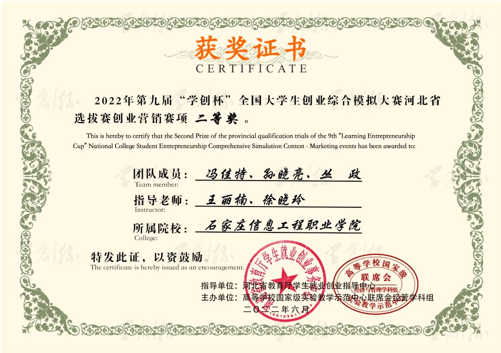 近日,beat365师生组建的6支创业团队在第九届“学创杯”全国高校大学生创业综合模拟大赛河北省选拔赛中喜获佳绩。