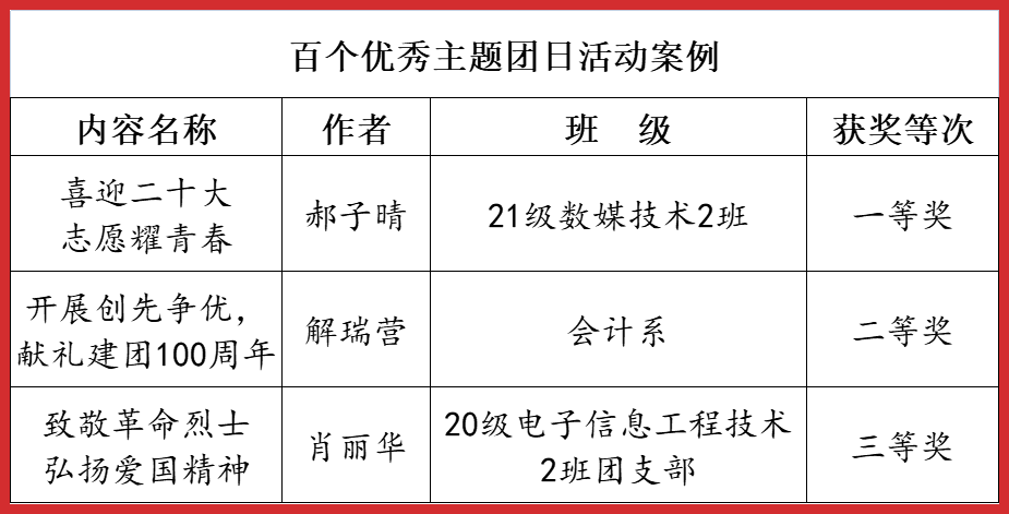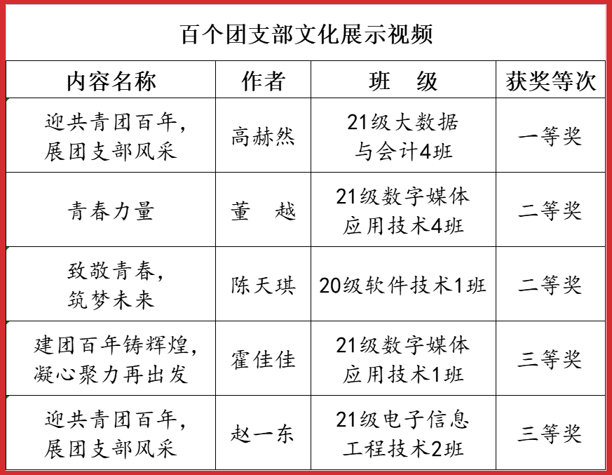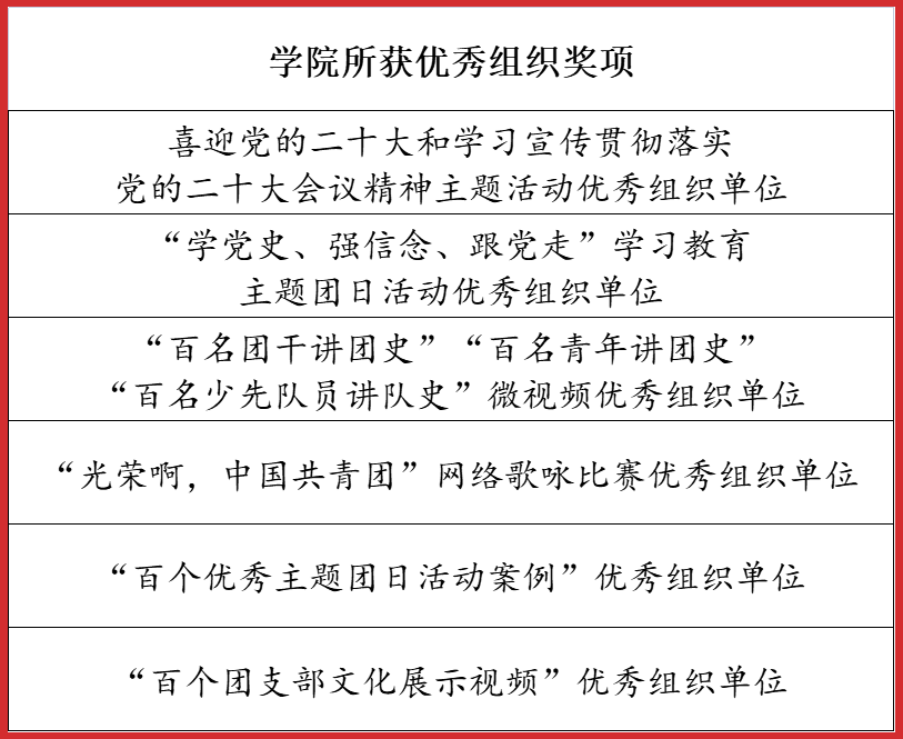 2022年4月——12月,市委教育工委在全市教育系统开展了庆祝建团100周年主题系列活动,beat365师生在活动中喜获佳绩,荣获一等奖5项,二等奖6项,三等奖3项。学院荣获优秀组织奖6项。