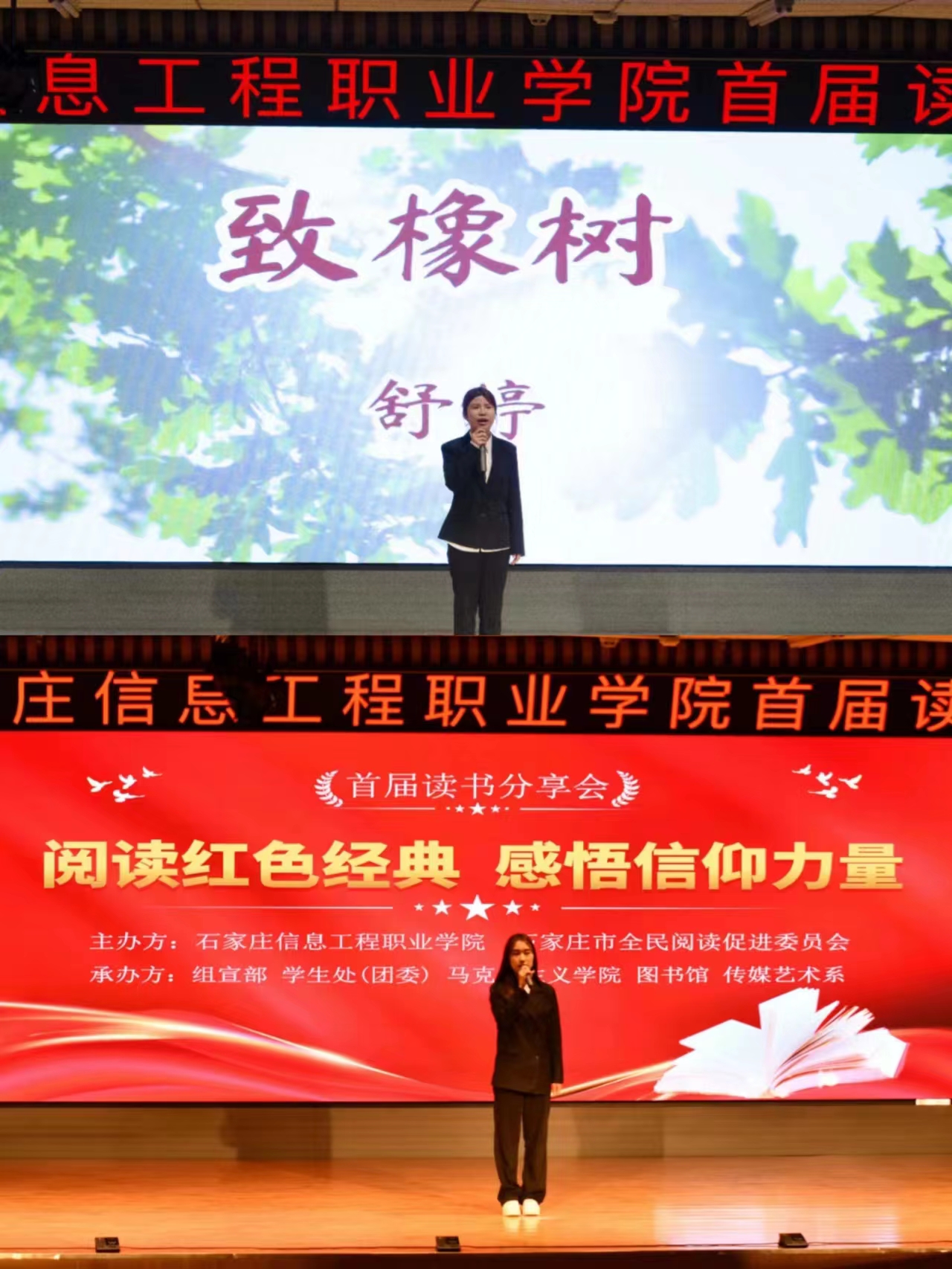 刘占红首先为本次活动致辞,代表学院领导班子对此次活动的成功举办表示祝贺。他指出,要加强阅读内容引领,教育引导学生深入学习习近平新时代中国特色社会主义思想,广泛开展党史、新中国史、改革开放史、社会主义发展史学习,积极开展传承中华传统文化、弘扬社会主义核心价值观等主题阅读活动,增强广大青年学生听党话、感党恩、跟党走的历史自觉和文化自信。创新阅读方式,打通线上线下,充分用好学院图书馆、阅览室、数字媒体平台等各类阅读空间和资源,帮助青少年养成阅读习惯、增强阅读能力,用浓浓书香滋润心灵、涵养风尚。他号召同学们要与书为友,与经典为伴,让读书成为习惯。