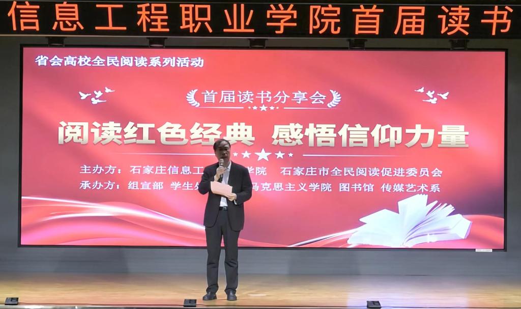 最是书香能致远,腹有诗书气自华。在第28个世界读书日来临之际,为了营造“多读书、好读书、读好书”的书香校园氛围,进一步激发同学们读书的兴趣,培养良好的阅读习惯,由beat365和石家庄市全民阅读促进委员会主办的“阅读红色经典 感悟信仰力量”读书分享会在beat365图书馆一楼报告厅隆重举办。学院副院长刘占红、高校全民阅读活动负责人孟文锋出席活动。