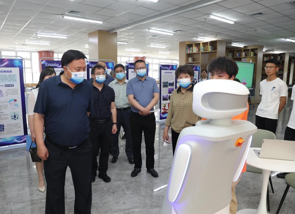 马文刚一行先后参观了专业科普、工作室推介、毕业设计、工作室项目、先进技术等五个展区,详细了解了大数据、物联网、人工智能等新一代信息技术的应用,虚拟现实、神奇换脸技术等学生团队研发项目和机器人技术在生产生活中的应用等情况。