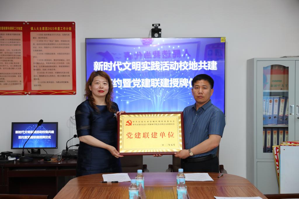 随后,郭彦昌与会计系负责人签订了“校地合作协议”,并互授“党建联建”牌匾。