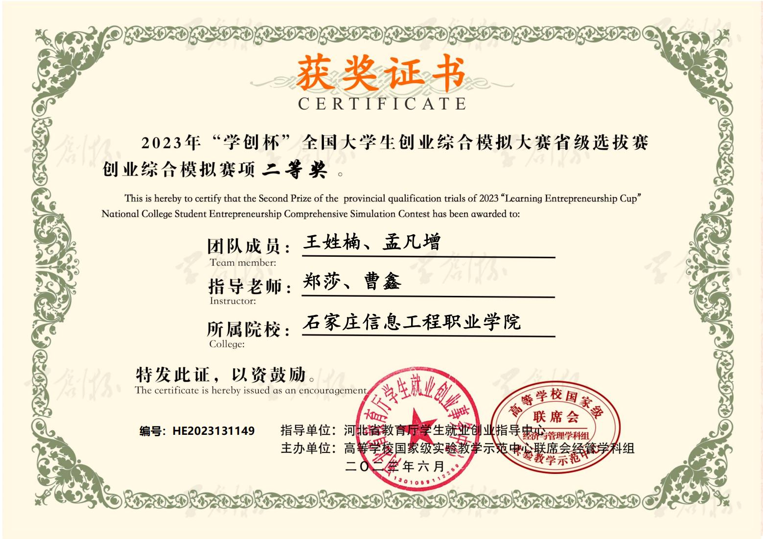 该赛事由高等学校国家级实验教学示范中心联席会经济与管理学科组、中国陶行知研究会主办,是全国大学生参与人数最广,受众最多的学科竞赛之一,被列入中国高等教育学会《2023年全国普通高校大学生竞赛分析报告》竞赛目录。
