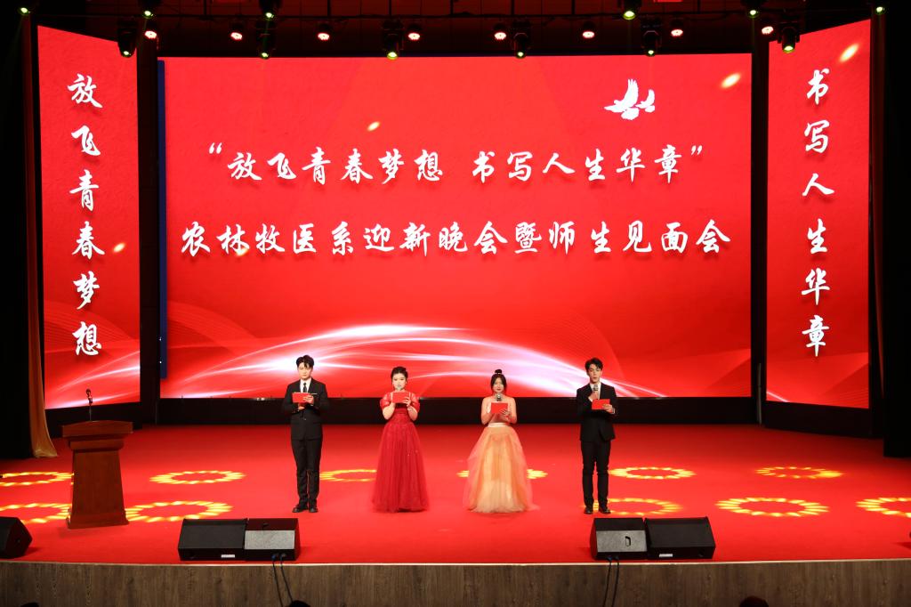 10月11日晚,学院昭德礼堂欢声笑语、灯光璀璨,处处洋溢着喜庆、团结、奋进的氛围,农林牧医系“放飞青春梦想,书写人生华章”迎新晚会暨师生见面会隆重举行。学院领导黄淑敏、范成宝出席,与师生共同观看晚会。