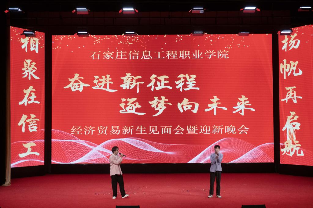 相聚在信工,扬帆再启航。为深入学习贯彻党的二十大精神,扎实开展学习贯彻习近平新时代中国特色社会主义思想主题教育,10月19日晚,经济贸易系“奋进新征程 逐梦向未来”新生见面会暨迎新晚会在昭德礼堂隆重举行。学院党委委员、组宣部部长范成宝出席,与师生共同观看晚会。