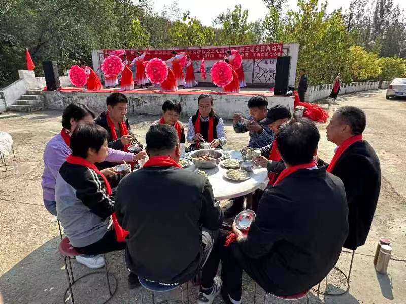 孝老饺子宴,味美情更暖。在转角沟村委会大院,驻村工作队员一大早就忙碌起来,和面、剁馅、包饺子,厨房里一派热火朝天的场景。广场上同样精彩纷呈,演出团队和群众自发准备的文艺节目轮番上演,传统的戏曲、经典的歌舞、欢快的节奏赢得了老人们的一片叫好,现场掌声阵阵、笑语连连,为重阳佳节增添了欢乐的气氛。