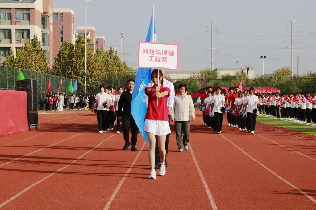 上午8时30分,国旗队、校旗队、花束队、旗林队、裁判员代表队和9支运动员代表队迈着矫健的步伐依次入场,整齐的队列、饱满的精神、嘹亮的口号、精彩的创意,传递出参与体育运动的热情,彰显着蓬勃的青春活力。现场气氛热烈而隆重,充分展现了信工师生健康向上、积极进取的精神风貌。