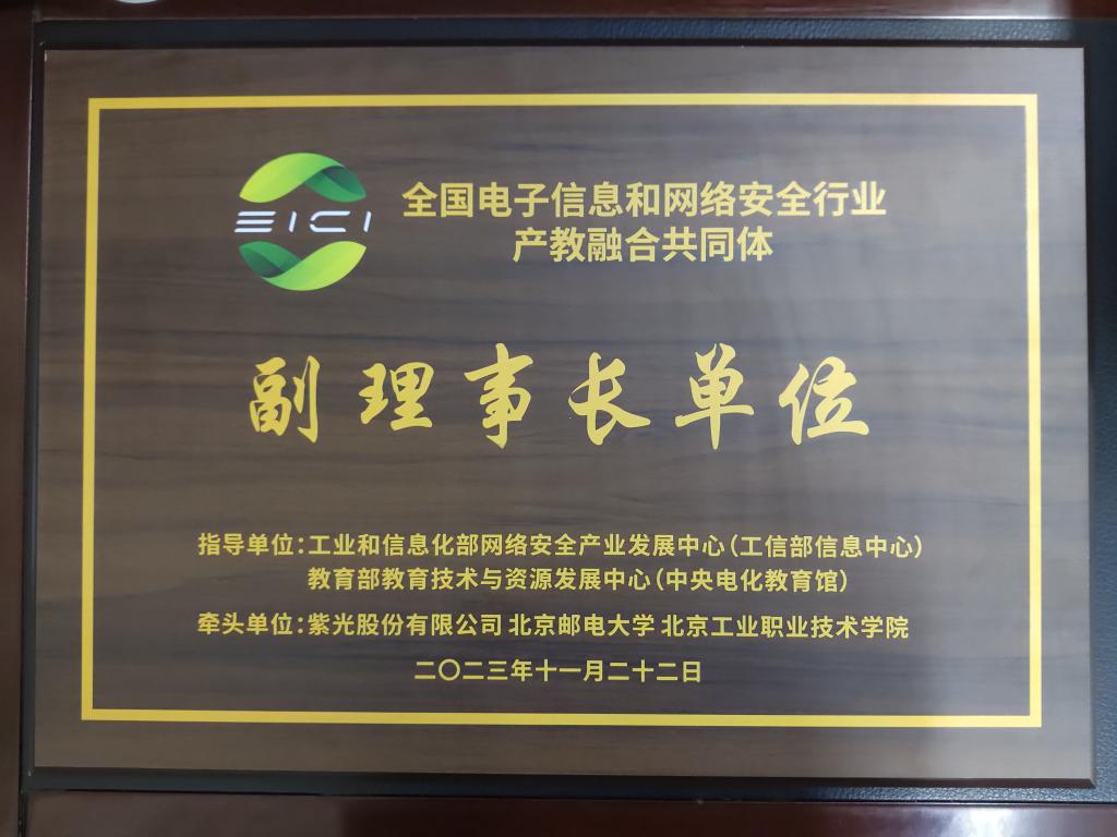 会上宣布由紫光股份有限公司、北京邮电大学和北京工业职业技术学院牵头发起的“全国电子信息和网络安全行业产教融合共同体”正式成立,并进行了常务副理事长单位和副理事长单位授牌仪式,beat365作为副理事长单位参与授牌。