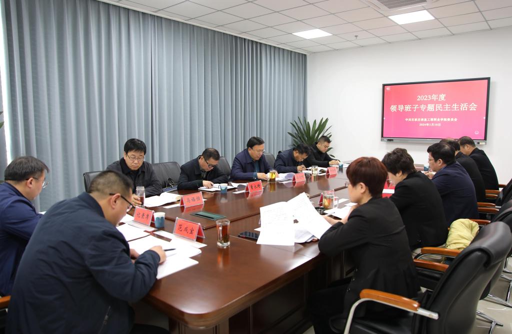 按照市委统一要求和部署,1月10日下午,学院领导班子召开学习贯彻习近平新时代中国特色社会主义思想主题教育专题民主生活会。聚焦学思想、强党性、重实践、建新功总要求,对照凝心铸魂筑牢根本、锤炼品格强化忠诚、实干担当促进发展、践行宗旨为民造福、廉洁奉公树立新风具体目标,深入学习领悟以学铸魂、以学增智、以学正风、以学促干的丰富内涵和实践要求,紧密联系学院领导班子和个人的思想、工作实际,查摆问题、深挖根源,制定切实可行的整改措施,开展批评和自我批评。党委书记马文刚主持会议并作总结讲话。市委主题教育第十联络组有关同志列席会议。