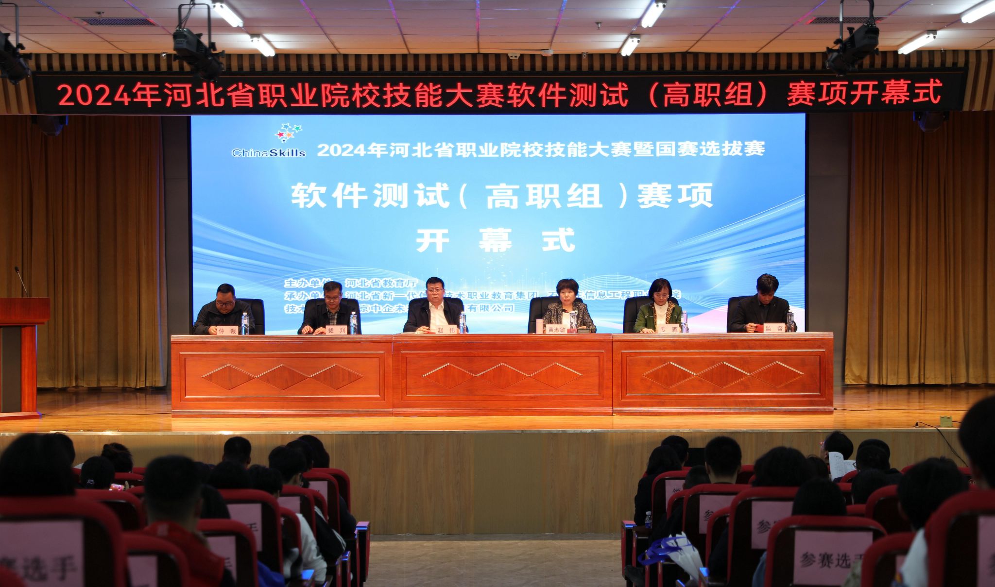 3月30日下午,大赛开幕式在学院图书馆报告厅隆重举行。学院副院长赵伟出席开幕式并致辞,副院长黄淑敏主持。大赛专家组组长、山东劳动职业技术学院陈静教授,大赛裁判、山西财政税务专科学校朱壮华教授,大赛监督仲裁、石家庄市教育考试院张朝亮主任,大赛监督仲裁、石家庄学院刘智国教授参加开幕式。
