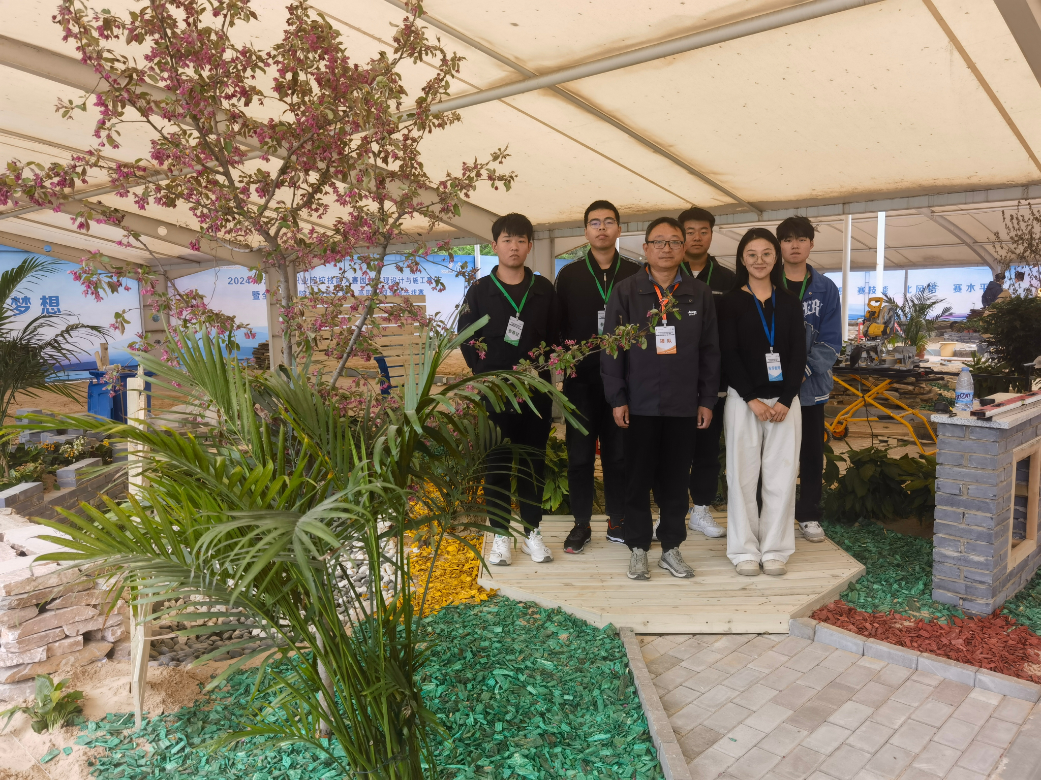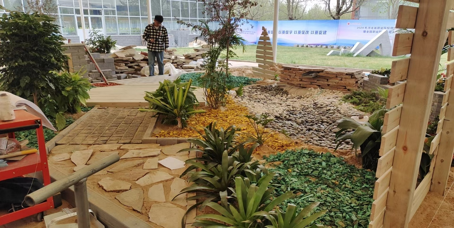 高职组“园林景观设计与施工”赛项是我国园林技术方面规格最高的赛事,不仅考验选手的设计能力,更考验了选手的动手能力。本次赛项为期两天,以团队方式进行,竞赛内容是5mx6m的小花园景观设计和施工,要求各参赛选手绘制场地设计方案和全套的施工图,并将设计方案按图施工,落实到施工竞赛工位。