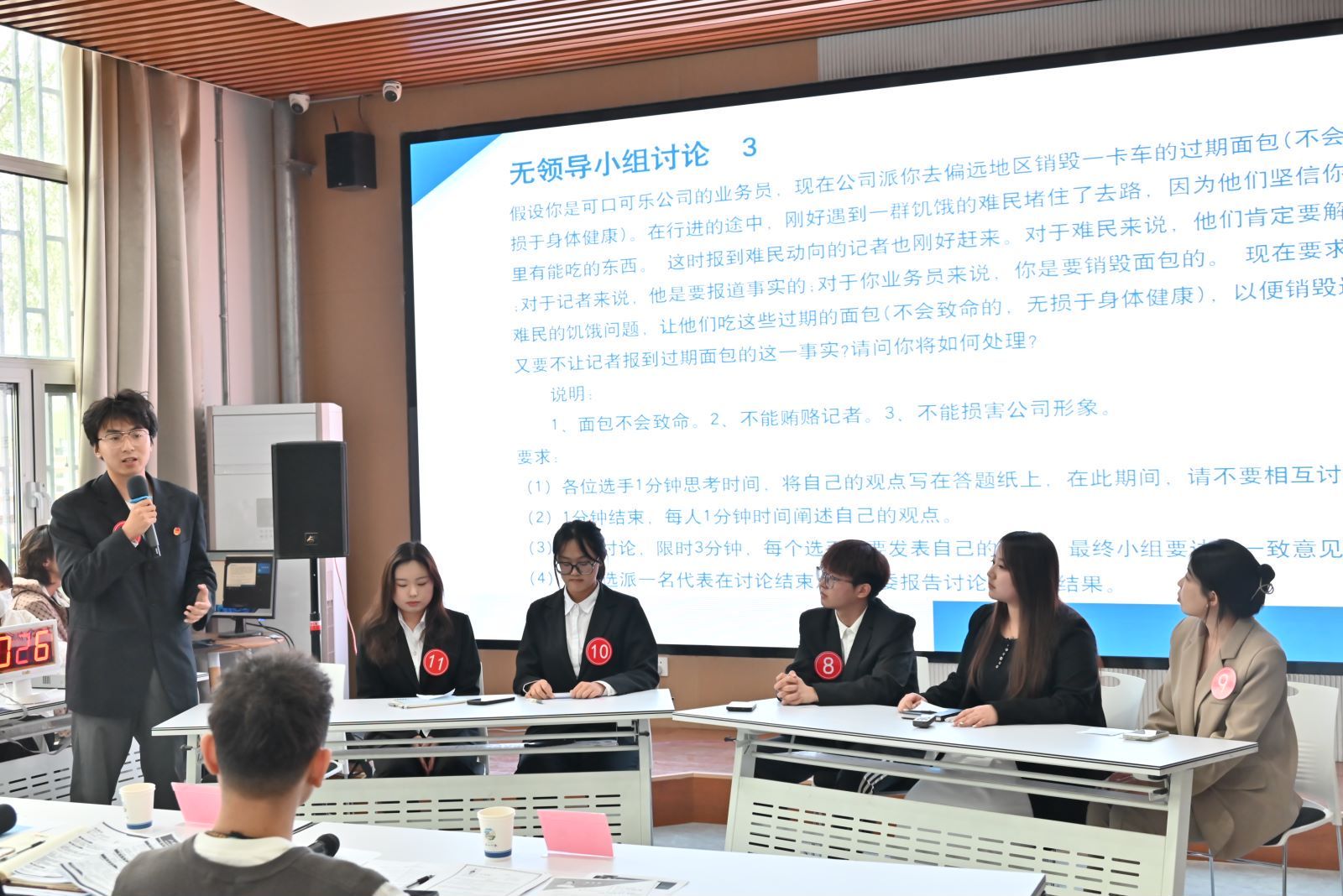 自大赛启动以来,传媒艺术系学生踊跃报名、积极参与,经过前期层层筛选,最终18名选手进入决赛。决赛分为自我介绍及串词环节、无领导小组讨论环节和自由提问环节三个环节,全方位、多维度考验了选手们团队协作、沟通技巧、语言表达等综合能力。经过激烈的角逐,比赛最终产生一等奖1名,二等奖2名,三等奖3名,优秀奖3名。