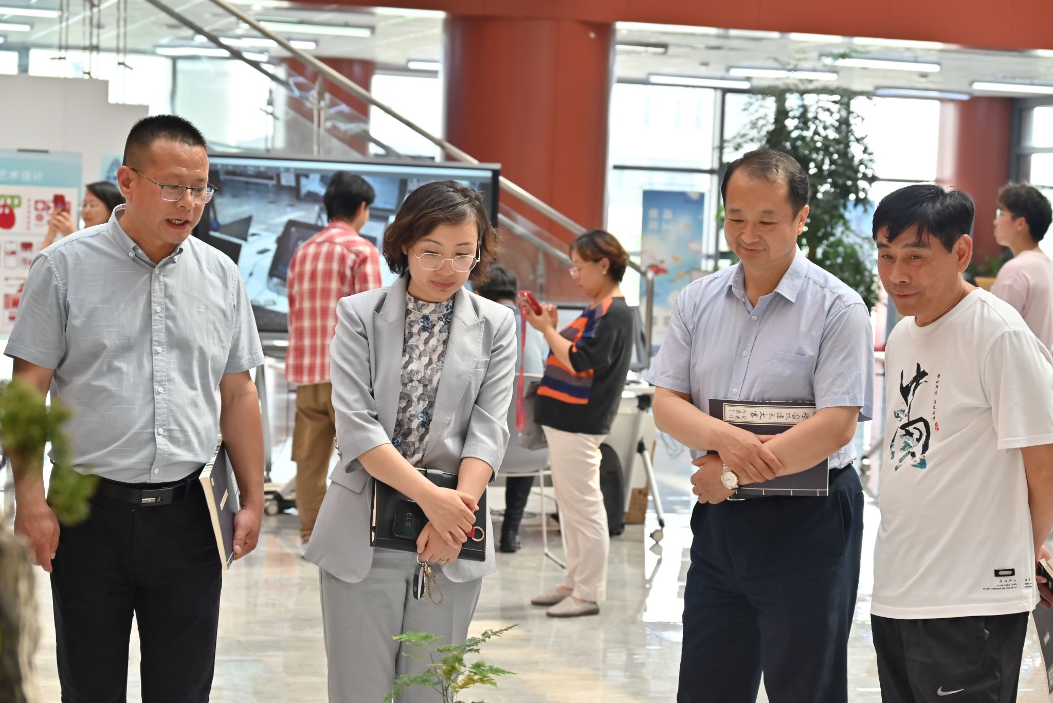 5月18—24日,传媒艺术系在学校图书馆举办2024年职业教育活动周系列活动。学院党委副书记马福恒,副院长赵伟、黄淑敏,党委委员、工会主席王志明,党委委员、组宣部部长范成宝莅临活动现场观摩指导,传媒艺术系负责人陪同。活动周期间,通过2024届毕业生优秀作品展、微景观设计大赛优秀作品展、肖像漫画进校园等一系列丰富多彩的活动,展示传媒艺术系近年来的职业教育成果,凸显“艺术+技术”“传承+创新”“情怀+智慧”的专业特色和魅力。