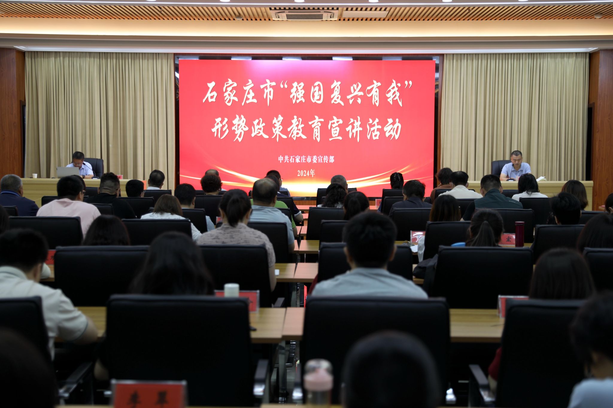 9月5日,由市委宣传部举办的“强国复兴有我”形势政策教育宣讲活动走进我校。石家庄市发展和改革委员会党组成员、副主任杜威世以《新中国75周年奋斗历程》为题,深入讲解了新中国75年的奋斗历程、新中国75年的巨大成就、75年伟大奋斗中的石家庄巨变,并就持续奋斗,夺取新时代中国特色社会主义伟大胜利讲了思路。市委宣传部社会宣传科科长王培主持。