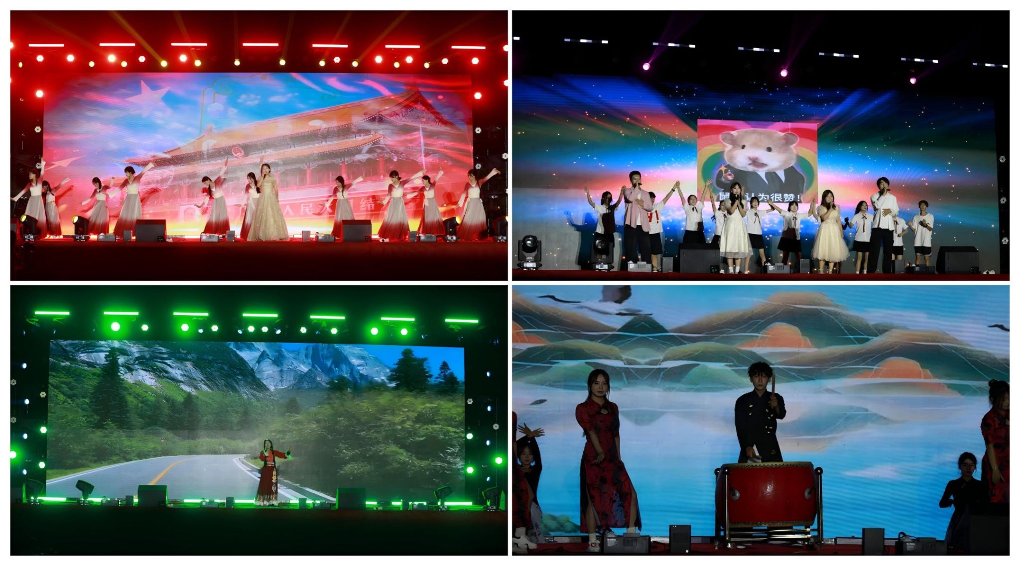一系列精心准备的节目轮番上演,每一个环节都充满了创意与惊喜。农林牧医系带来的开场舞《如愿》以优美动人的旋律搭配轻盈曼妙的舞姿,瞬间点燃了现场气氛。经济贸易系选送的歌曲《光亮》,以激昂的歌声让人心潮澎湃。会计系同学通过活力四射的现代舞蹈《dancing shoot》展现了他们年轻而不失专业的风采。管理系的古典舞《花雨落》以其优雅的动作、柔美的姿态赢得了满堂喝彩。此外,《灯火里的中国》《new boy》《天路》等一系列充满正能量的作品依次呈现,充分展示了学生们积极向上的人生态度及深厚的艺术功底。由农林牧医系特别策划的传统技艺展示——《变脸》更是将整场晚会推向高潮,那变幻莫测的脸谱变换技巧令人叹为观止,引来观众阵阵惊呼和掌声。经济贸易系带来的说唱作品《trouble marker》以其独特的风格吸引了大家的目光。管理系用一首深情款款的《成都》带领所有人走进了一段关于成长的故事。会计系以一首气势磅礴的朗诵——《盛世中国》为同学鼓足了干劲,用《从传统到现在》的T台走秀让同学们在民国和现代的时空中穿越。最后,市歌舞团的吴婷老师亲情助演,用三首高水准的歌曲演唱为本次晚会画上了圆满句号。