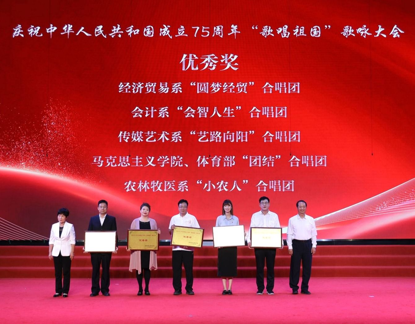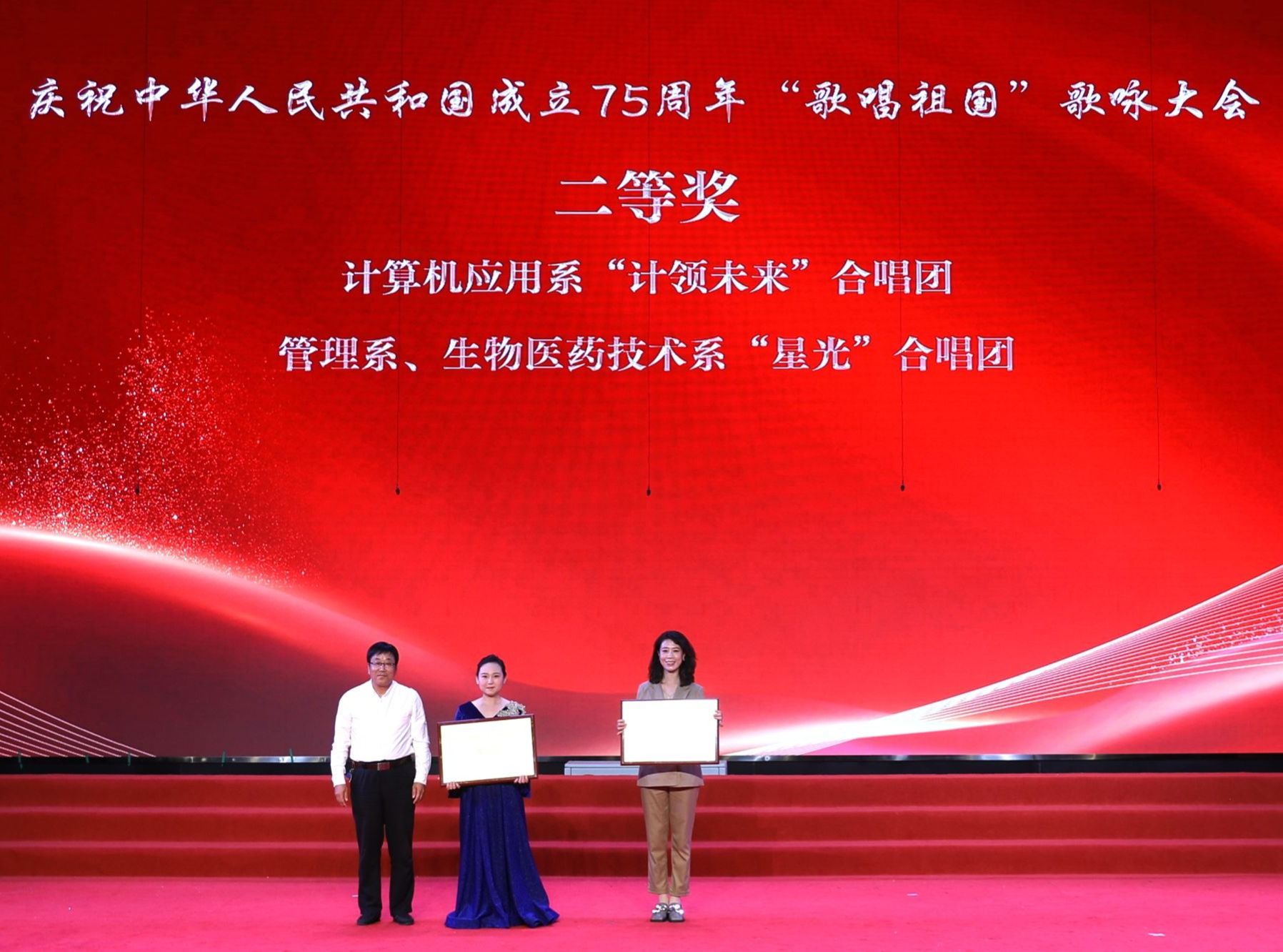 “我和我的祖国,一刻也不能分离”“愿你所愿的永远,走你所走的长路”“没有共产党就没有新中国”……9月27日下午,一首首耳熟能详的歌曲在昭德礼堂激情唱响,学院庆祝中华人民共和国成立75周年“歌唱祖国”歌咏大会隆重举行。