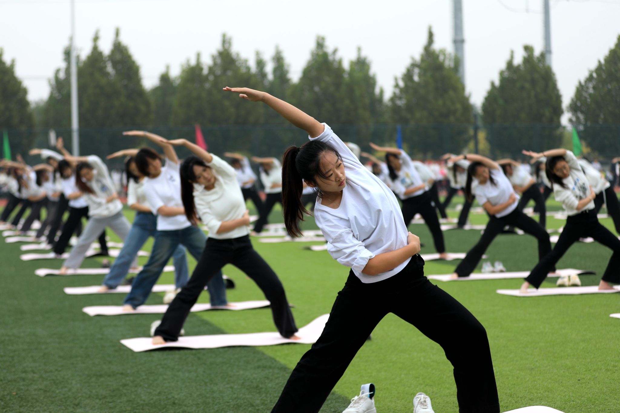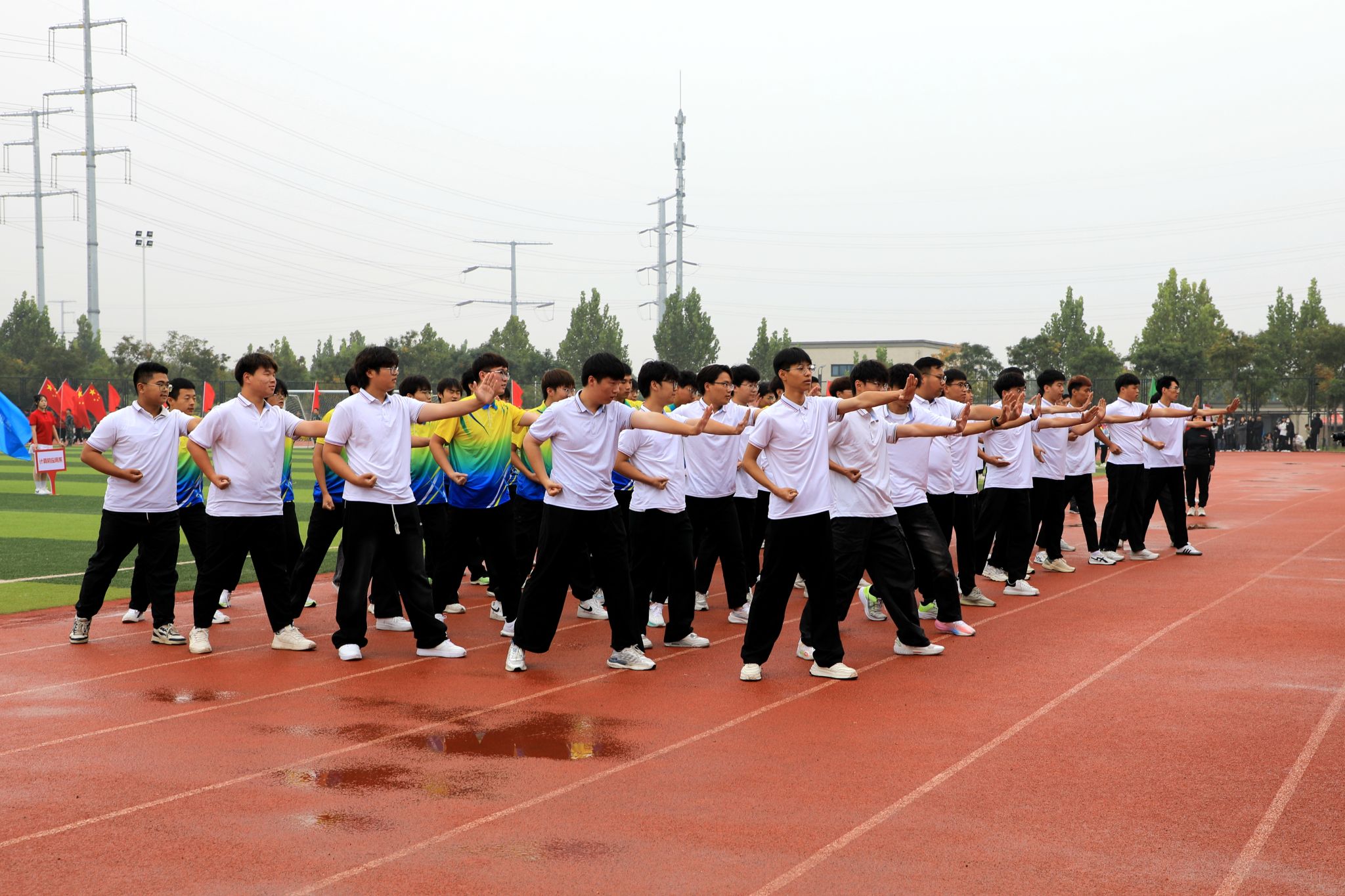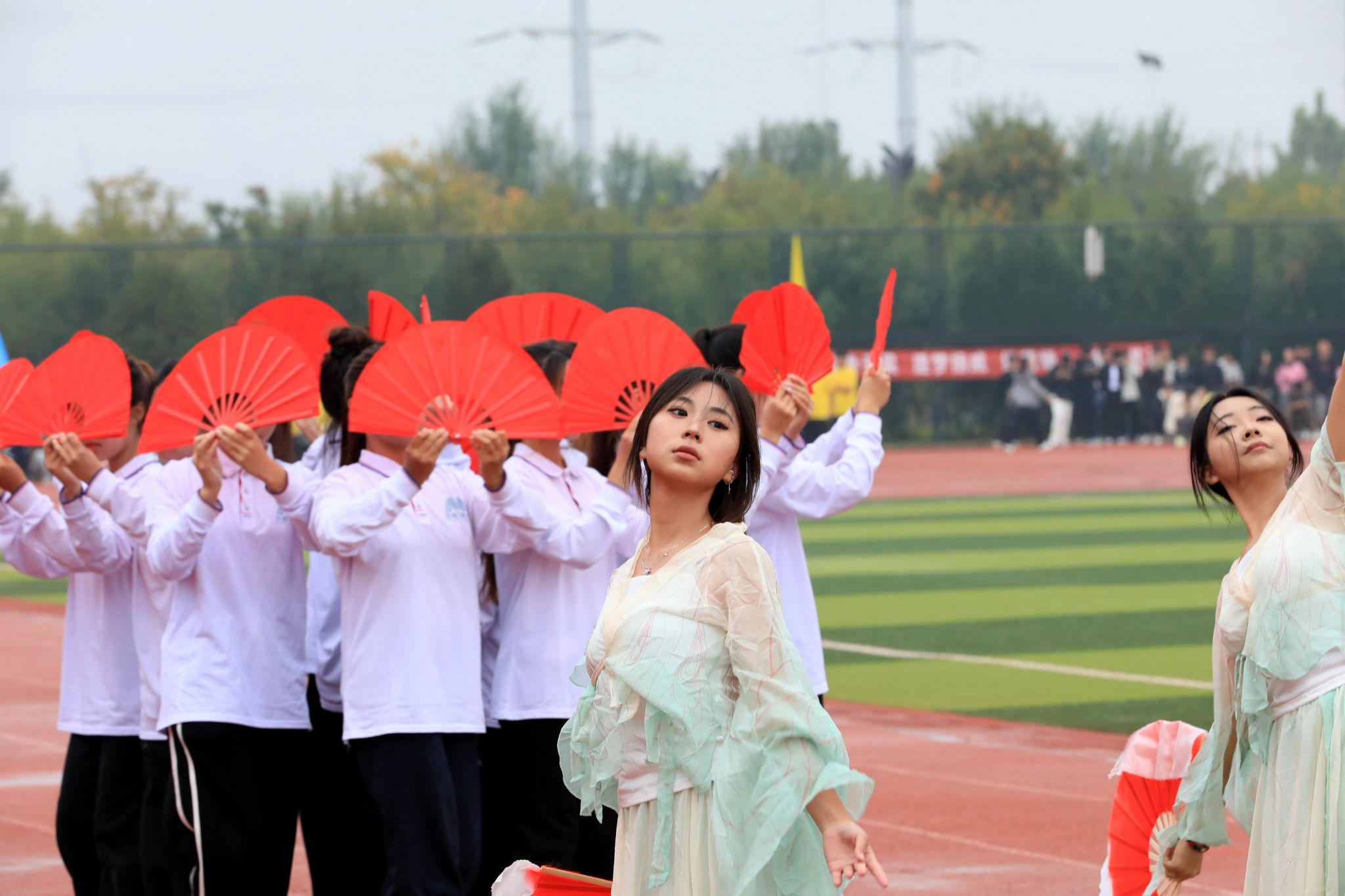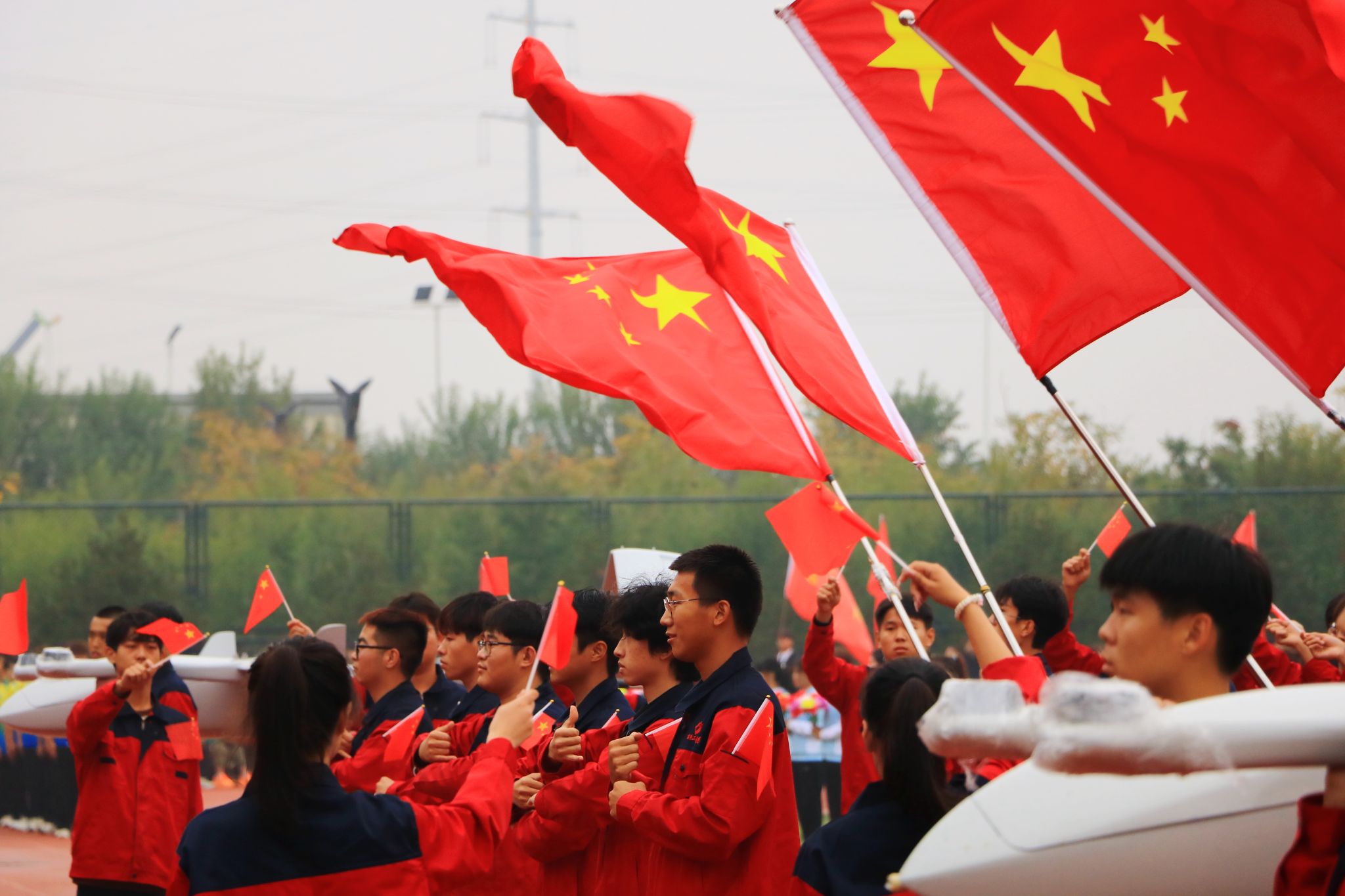 燃动青春,尽情绽放。啦啦操表演《舞动青春》手持闪耀的花球涌向绿茵场,以整齐划一的动作、充满活力的舞姿瞬间点燃现场气氛;瑜伽表演《舞韵瑜伽》以其清新而宁静、优雅与深邃传递出身心平衡、和谐共生的理念;传统武术表演《龙飞扇舞》时而昂首阔步,时而腾空而跃,刚柔相济,动静交错;航模表演引擎轰鸣,同学们亲手制作的各式航模在空中自由翻转、你追我赶,划出一道道优美的彩色曲线,展示了高超的飞行技巧和团队协作能力。掌声经久不息,喝彩声此起彼伏。