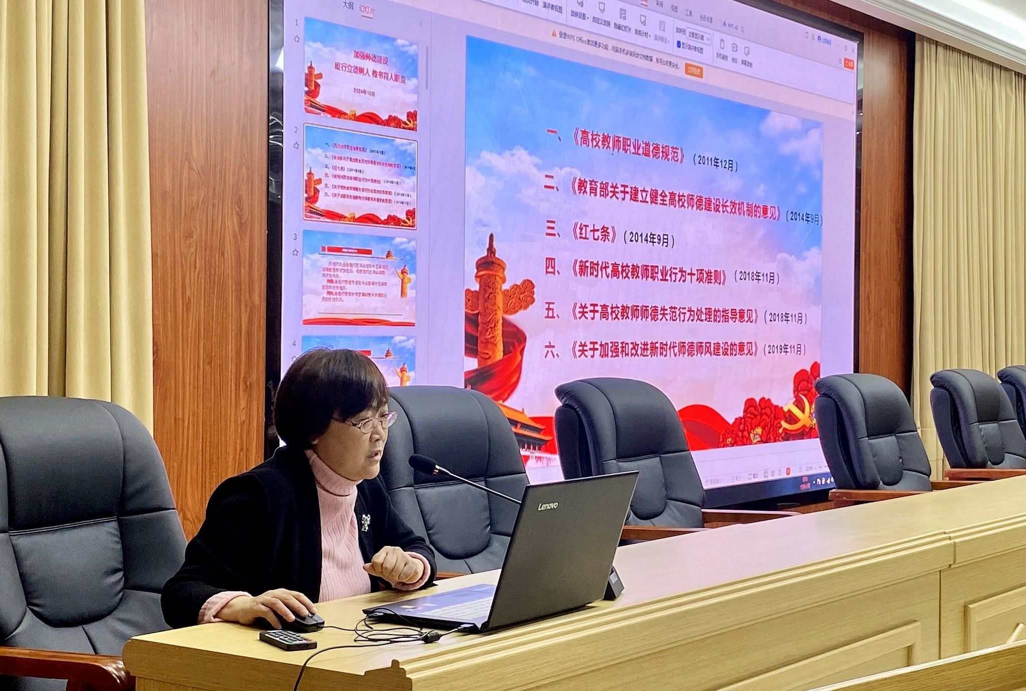 生涯发展与就业指导教研室主任郑娇老师以《学高为师,身正为范》为题,对新入职教师课堂教学活动中的仪表、仪态等进行培训。