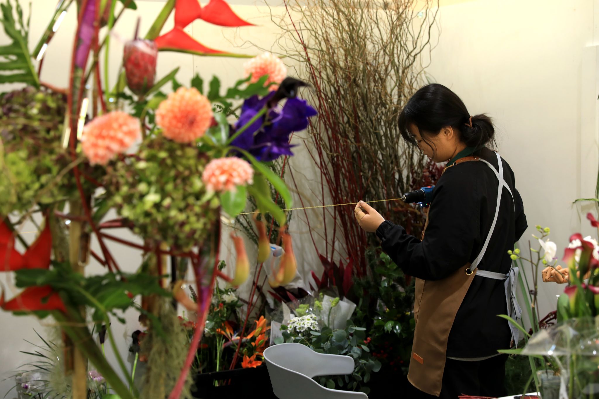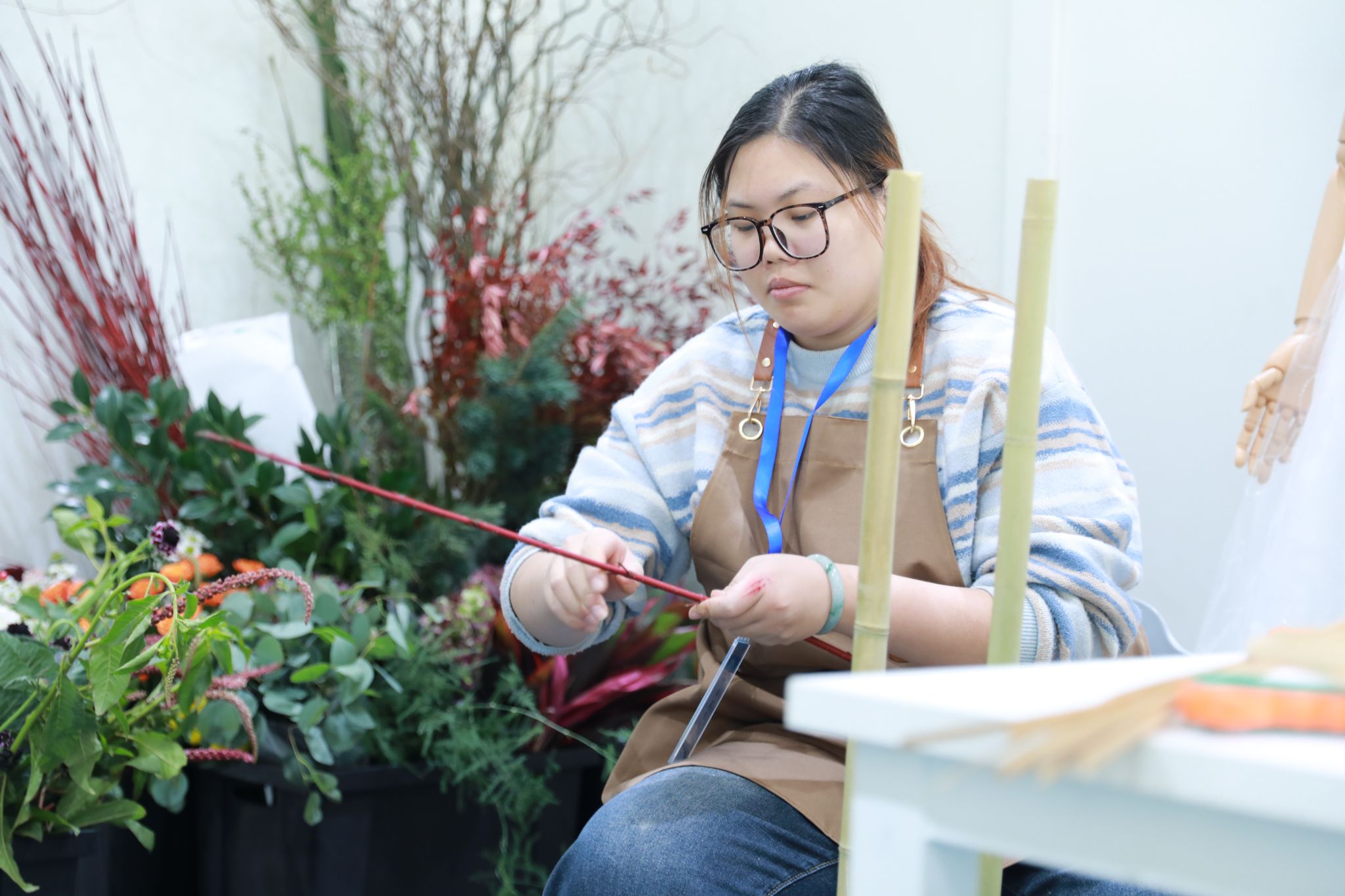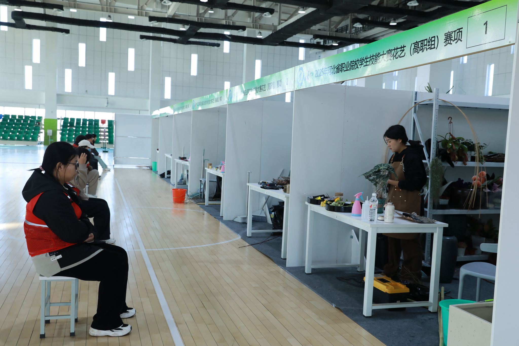 比赛期间,选手们各显神通,以精益求精的态度和勇往直前的竞技精神,在限定时间内成功完成了瓶花、切花装饰、新娘花饰三个作品,展现了卓越的专业素养。赛场秩序井然,选手们严格遵守规则,以饱满的热情投入创作,充分彰显了职业院校学生扎实的专业技能水平和创新能力,诠释了精益求精的工匠精神,展现了职业教育的独特魅力。