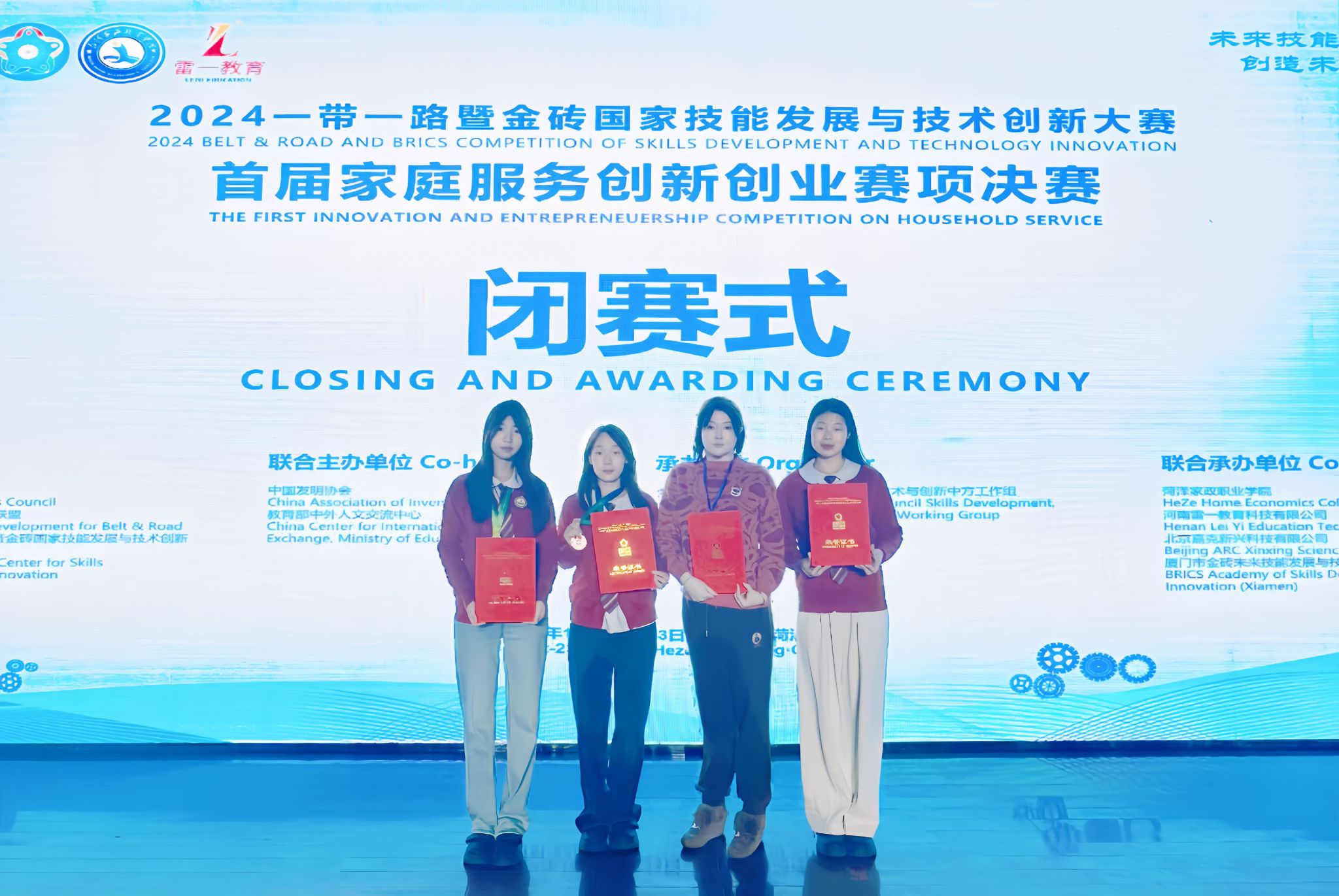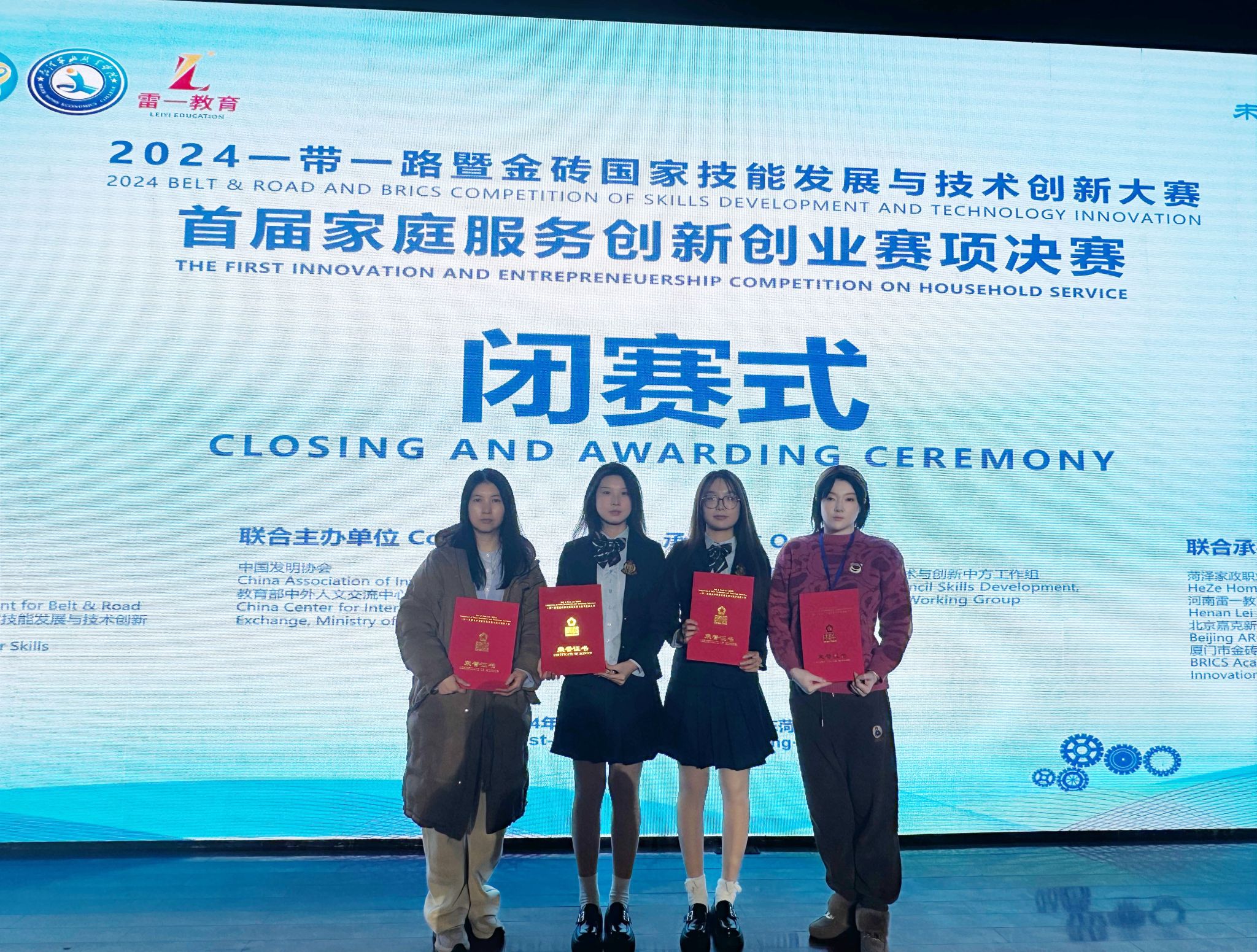 12月23日,2024一带一路暨金砖国家技能发展与技术创新大赛首届家庭服务创新创业赛项决赛在山东菏泽家政技术学院落幕。在全国高校组决赛中,beat365生物医药技术系婴幼儿托育服务与管理专业的2个参赛项目从70多个决赛项目中脱颖而出,分别荣获二等奖、三等奖。其中,姜梦琦、王淼、杨若冰、霍鑫团队的“爱特宝妈一站式托育到家”项目荣获二等奖,指导教师史晶晶、刘义青获“优秀指导教师奖”,学院荣获优秀组织奖;刘思雨、方雨璇、靳紫萌、赵辛子钰团队的“爱惠托职工爱心托育”项目荣获三等奖。