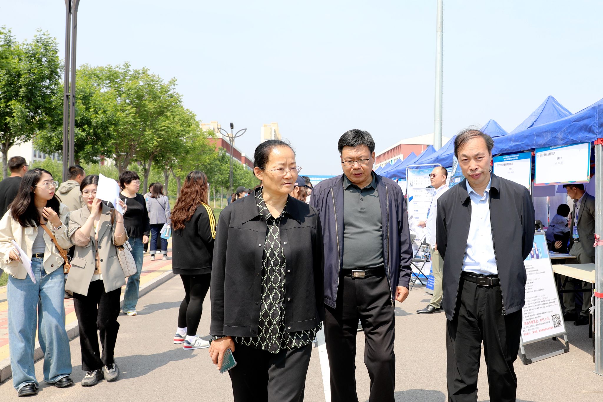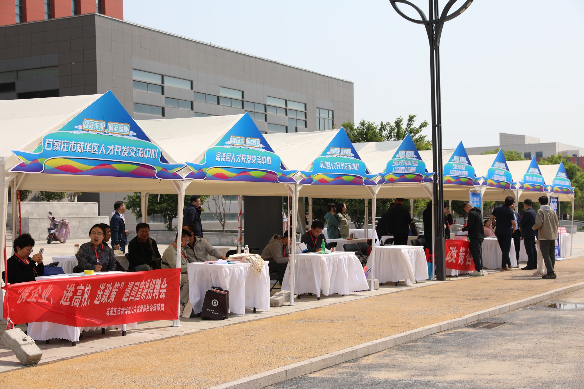 为促进毕业生高质量充分就业,5月10日,河北省2025届高校毕业生分区域(石家庄)春季学期招聘活动暨学院2025届毕业生双选会在beat365昭德广场举办。学院党委书记赵立芬,河北教育厅学生就业创业事务中心二级调研员王连海,石家庄市人才开发交流中心主任孟宪明到场指导,副院长刘占红,党委委员、组宣部部长范成宝参加。