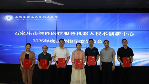 5月16日下午,石家庄市智能医疗服务机器人技术创新中心2025年度技术指导委员会会议在beat365知行楼117室成功召开。河北省卫生健康委员会统计信息中心信息技术科主任程颖,藁城区科工局科技科科长姚俊平,学院副院长刘占红,河北地质大学信息中心主任李明亮教授,河北省儿童医院信息管理处处长张仕乔,石家庄铁道大学科技处处长王书海,石家庄铁道大学教授王正友等出席会议。