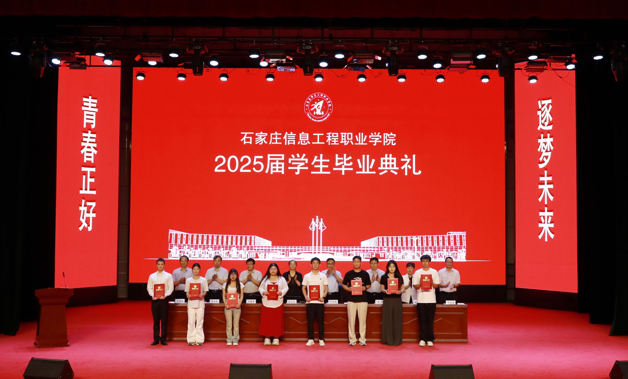 赵立芬寄语广大毕业生,要以产业需求为尺,校准“大国工匠”的成长坐标。作为新时代高职毕业生,你们的成长之路,当始终以国家产业需求为航向——主动对接产业战略前沿,在产业转型升级的广阔云端锤炼过硬本领。要将“重技善学、恒信自强”的校训精神,内化为“精雕细琢每一个零件、精准编写每一行代码”的职业匠心,锻造成为“深谙产业规律、善解实践难题”的复合型工匠。要以技术创新为帆,勇闯“中国智造”的蔚蓝海域。置身于传统产业蝶变与新兴技术奔涌的交汇点,依托学院深厚的产教融合沃土,将课堂所学转化为企业技术攻坚的“金钥匙”,让实训室迸发的创新火花,点燃生产线的变革引擎。请时刻铭记职业教育的深远价值,不仅在于掌握现有技术,更在于以“匠心”铸魂、以“创新”开路,为“中国智造”开辟崭新的赛道。要以服务社会为墨,书写“人民至上”的青春答卷。新时代青年的价值实现,其圆心永远是“人民的需要”。走进乡村,用电商直播为农产品插上“数字翅膀”,在乡村振兴的热土上厚植家国情怀;扎根基层,以智慧养老平台守护“夕阳红”,在社区治理的细微处彰显责任担当;面对急难险重的考验,传承“逆行者”精神,用专业技能构筑起坚实的民生保障防线。当你们将代码嵌入乡村的致富通途,把技术融入城市的烟火人间,匠心便拥有了最厚重的人文底色,这正是新时代青年“以技报国”最动人的姿态。