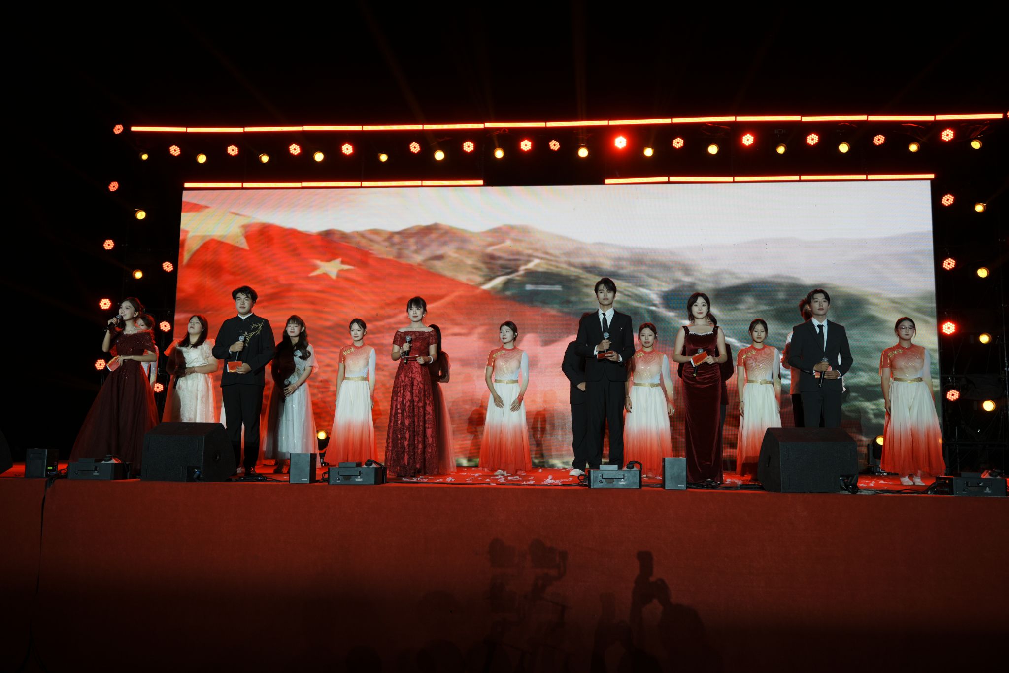 晚会在激昂的开场词中正式拉开帷幕。六位主持人以“江河奔涌,终汇于海;繁星闪烁,共聚银河”的诗意开场,寓意2025级新生如百川汇流般相聚信工学院,开启人生新篇章。整场晚会节目精彩纷呈,亮点频出。开场节目《超级英雄》以热血澎湃的表演瞬间点燃全场气氛;舞蹈《寄明月》将传统扇舞与现代编舞完美融合,展现东方美学韵味;歌伴鼓《骁》用清新旋律唱出青春心声;维吾尔族舞蹈以其独特的民族风情和欢快节奏赢得满堂喝彩。石家庄市歌舞团的歌手李志宇应邀为同学们带来了歌曲《蒙娜丽莎的眼泪》《倒数》,专业的表演和极具穿透力的嗓音让师生们叹为观止,更是将晚会推向高潮。川剧《变脸》节目惊艳全场,表演者手法娴熟,瞬息万变的创意T台秀展现了学子们的奇思妙想,他们将专业元素与时尚设计相结合,体现了信工学子的翩翩风采。歌伴舞《春天》用蒙语吟唱传递草原情怀,引发全场大合唱。晚会在歌伴舞《我爱你中国》中圆满落幕。