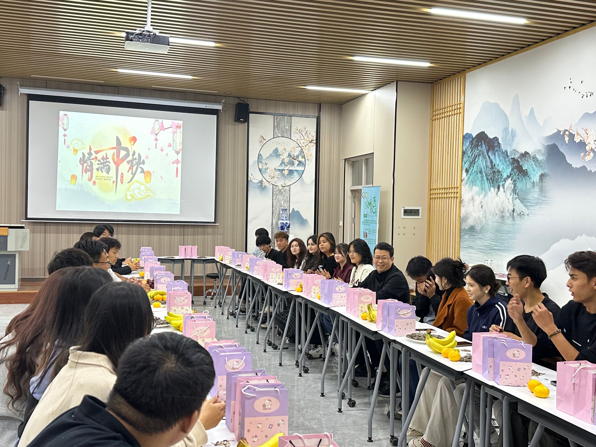 “本来以为这个中秋节会很想家,但是看到院领导和老师们来陪我们过节,和大家一起聊天,感觉特别温暖,就像在家里一样,真的很感动。”2025级畜牧兽医3班古再丽努尔·图尔迪同学感动地说。活动中,同学们踊跃分享家乡习俗,与院领导、老师畅谈学习生活中的点滴趣事,现场欢声笑语不断,洋溢着温馨融洽的氛围。