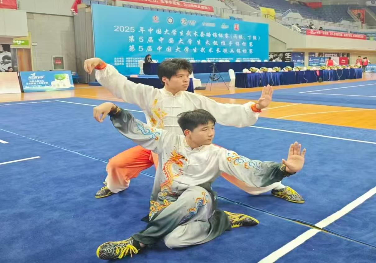 在女子组60公斤级推手比赛中,软件工程系李世玉凭借精湛的技法与沉稳的战术发挥,一路过关斩将,以小胜大,最终摘得金牌。在女子组48公斤级推手比赛中,传媒艺术系武少华凭借扎实的功底与灵活的临场应变,历经多轮激烈角逐,最终斩获银牌。在男子66、78公斤级对决中,网络与通信工程系邵雨泽、管理系韩玉强,面对实力更为强劲的对手,二人皆沉着应战、顽强拼搏,最终斩获银牌。在男子70公斤级太极推手比赛中,经济贸易系高赛凭借稳健的技术风格与坚韧的竞技状态,最终斩获铜牌。在双人活步推手(套路形式)的赛场中,经济贸易系高赛、网络与通信工程系黄泰基的组合凭借默契的配合与扎实的技术功底,一路稳健发挥,最终斩获银牌。