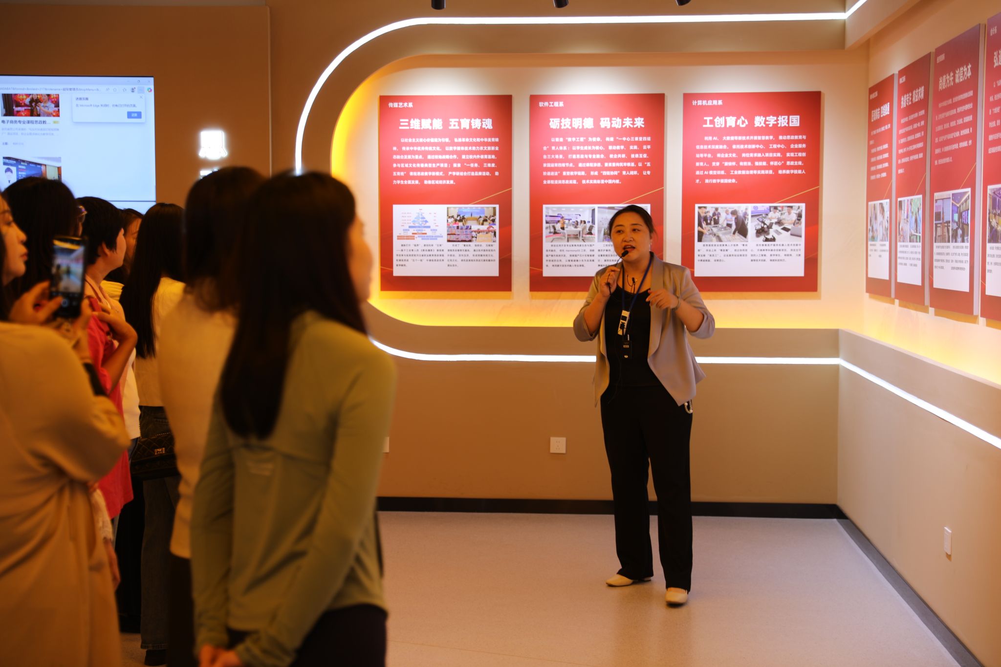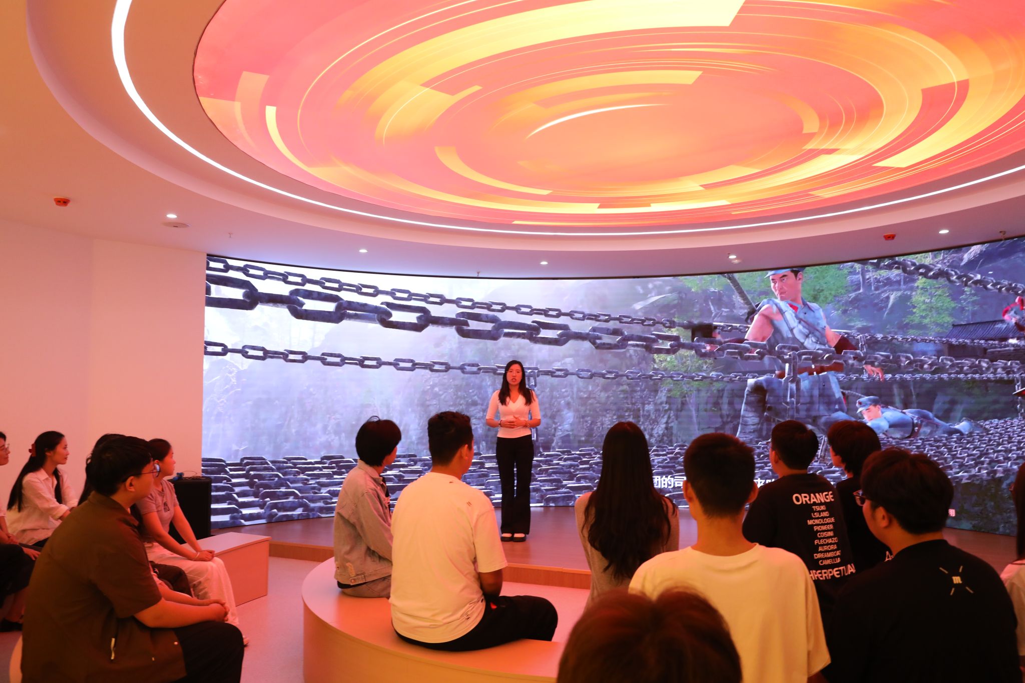 走进大思政教育实践中心,穿越“时光隧道”感受中国共产党百年波澜壮阔的奋进历程和新时代建设的伟大成就,感悟中国共产党人的初心使命,引导广大师生在回望峥嵘岁月中厚植家国情怀。这里全面展示学校党委发挥核心领导作用打造“一流党建”“智慧党建”的有力举措和标志性成果;深入挖掘燕赵大地蕴含的红色精神内涵,将红色基因与时代精神融入教学,努力开创“红色舞台剧”“我爱家乡红”等思政品牌,实现思政元素和教育场景的深度应用;生动融入河北省、石家庄积极践行党中央决策部署取得的一系列成就,使党的理论学习更加融会贯通,增强师生“四个自信”,保持政治“三力”,通过“地域实践+理论升华”,用地方发展生动实践精准诠释党的理论建设成果;融合应用课程思政建设数智化成果,依托数智思政教学平台,整合线上线下教学资源,全面赋能教学相长;高度契合学工管理创新发展需求,贴近学生学习生活,丰富“五育并举”思政内涵,为开展主题教育、强化学生管理与服务提供鲜活样本;用心营造润物无声的校园文化、企业文化,在文化熏陶中厚植爱校情怀、涵养职业素养;精准施策大学生心理健康教育,建立学生心理成长档案,分层分类开展个性化辅导,让思政教育的“精神引领”与心理教育的“情感关怀”同频共振。同时,还开辟了“党团员活动区”、“行为规范知识抢答区”“中华优秀传统文化体验区”“研讨交流区”等常态化教育培训专属空间。各版块协同联动,构建起“沉浸式体验——互动式学习——实践性感悟”的育人闭环,既强化思想引领,又贴合学生成长需求与职业发展导向,让立德树人更具针对性和吸引力,打造了思政教育的又一课堂。
