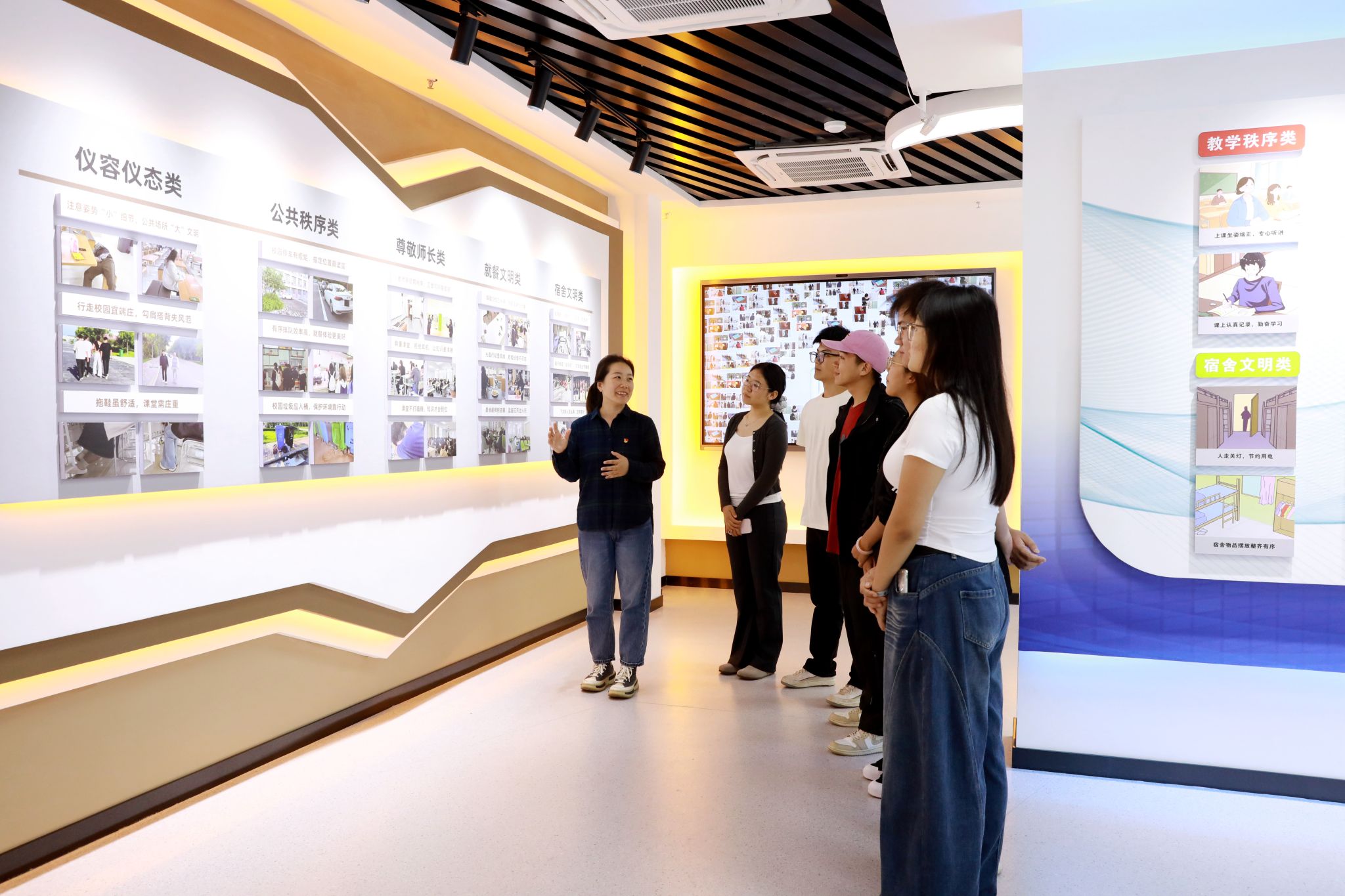 思政课堂有声有色,实践育人走深走实。近日,beat365大思政教育实践中心正式落成启用。崭新的场馆内,学生围站在红色舞台剧场前沉浸式体悟红色精神,党员干部在学工管理版块边走边看边交流思政育人心得,一堂堂兼具温度与深度的思政课、一场场兼具力度与实效的教育培训在这里同步进行,标志着beat365思政教育从传统课堂向实景化、沉浸式育人场景升级,为职业教育思政实践育人注入全新活力。