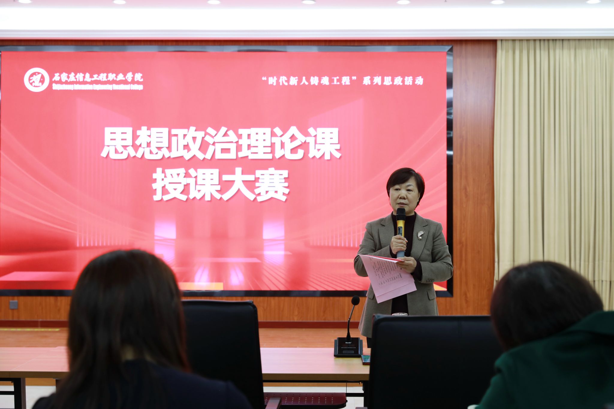 教务处负责人、马克思主义学院全体思政课教师及50余名学生代表现场观摩比赛。