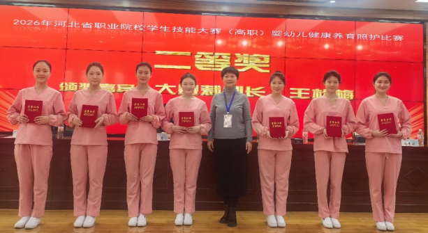 近日,由河北省教育厅主办的2026年河北省职业院校技能大赛(高职)婴幼儿健康养育照护比赛在河北女子职业技术学院成功举办。来自全省11所高职院校的参赛队伍同台竞技,beat365生物医药技术系婴幼儿托育服务与管理专业张子涵、黄亚美、段希媛三名同学组成的参赛团队斩获大赛二等奖。