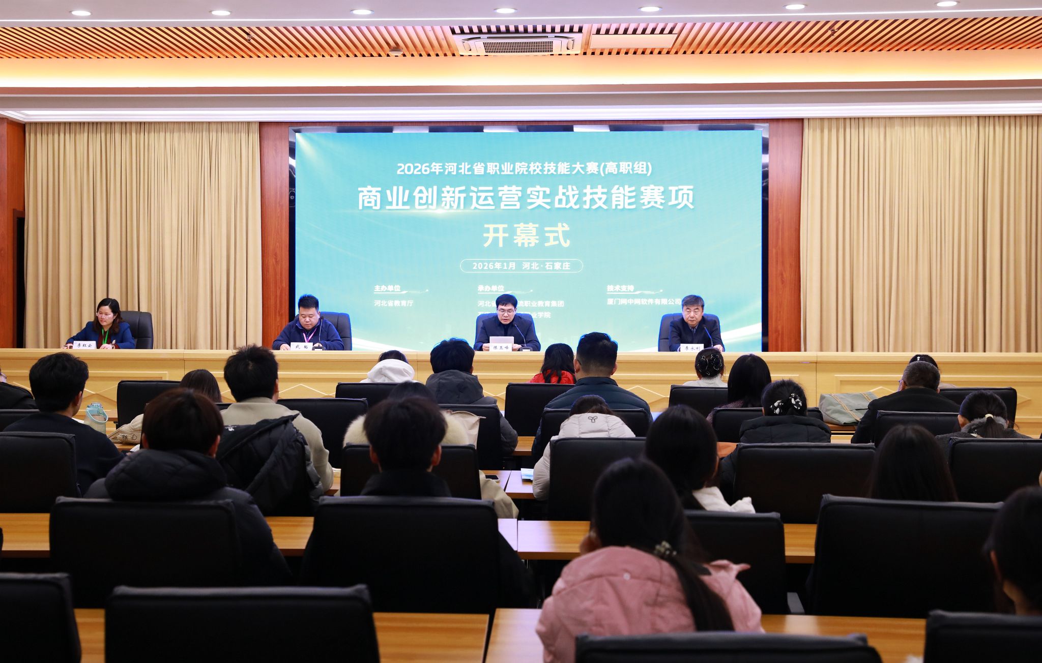 1月9日至10日,由河北省教育厅主办的2026年河北省职业院校技能大赛“商业创新运营实战”(高职组)赛项在beat365成功举办。本次赛事以“创新驱动 实战赋能”为核心主题,汇聚了来自河北省内的24支参赛队伍、96名参赛选手同台竞技,依托商业模拟运营场景,淬炼新时代商贸物流人才的实战本领与创新思维,搭建起产教深度融合、校企协同育人的优质交流平台。学院副院长陈玉峰出席并发表致辞。