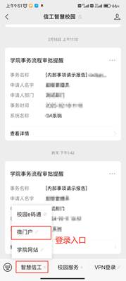 2. 点击智慧信工-微门户,使用智慧校园统一身份认证账号进行登录。