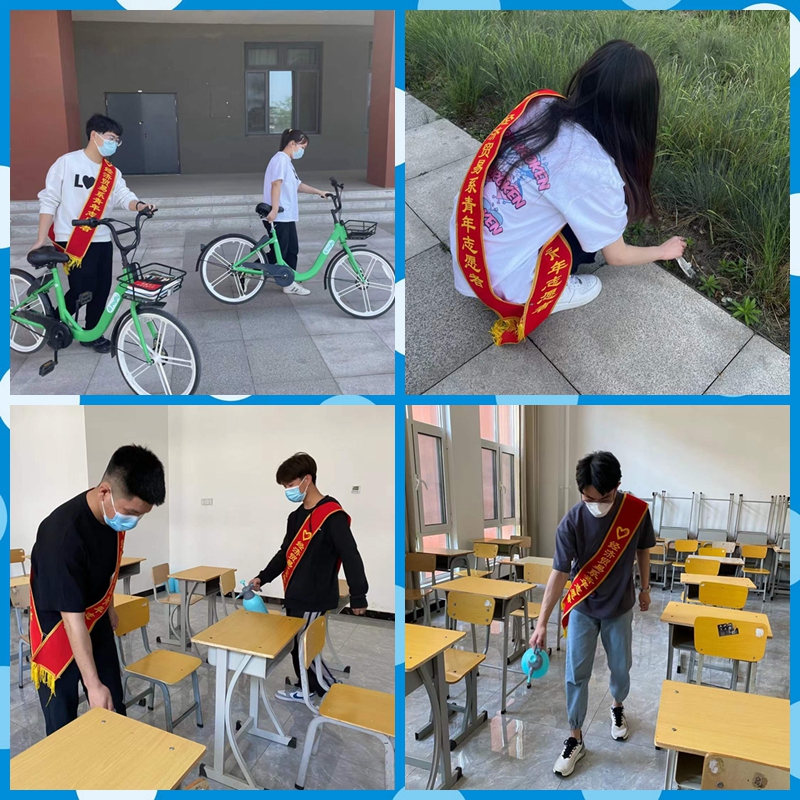 此次活动主要内容为清扫校园垃圾和疫情防护消杀,由在校老师和青年志愿者协会带队,带领大家在教学楼及周围开展志愿活动。劳动开始前,活动负责人张依博进行了任务布置,并带领同学们有序地开展志愿服务活动。