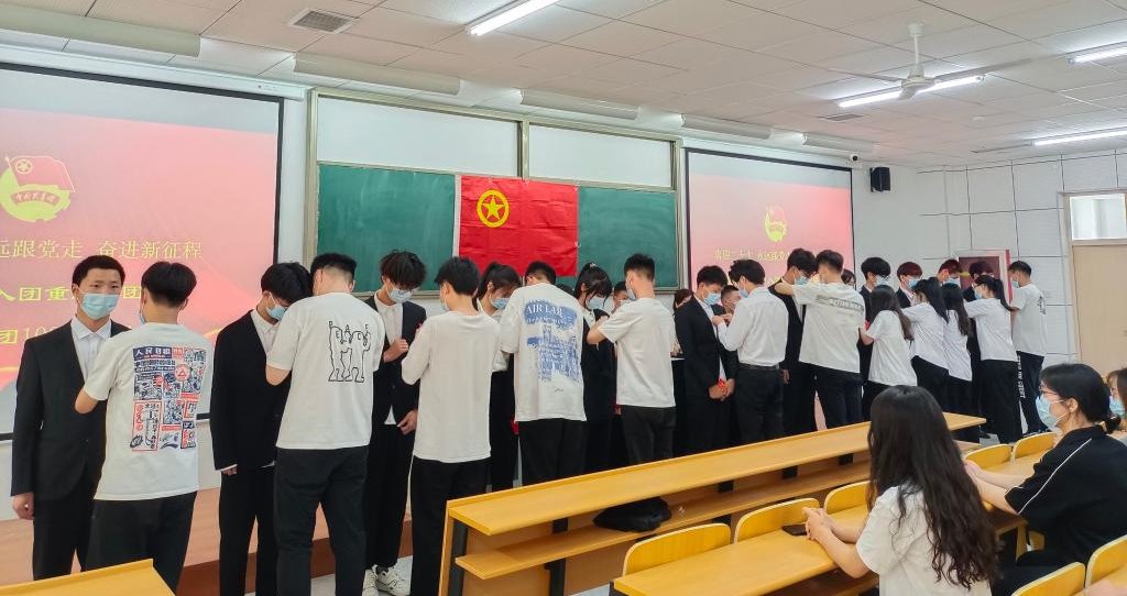 计算机应用系团总支副书记张权博向团员们强调了举行入团仪式的重要意义并宣读新团员名单。本次共有13名同学光荣加入共青团。团徽、团员证是共青团的精神象征,在一代代团员的奋斗中被赋予了更多的意义。由老团员为新团员颁发团章和团员证,佩戴团徽。接过了团章与团员证,便是接过了新青年的责任;佩戴了团徽,便已将团员的身份与使命铭记心上。